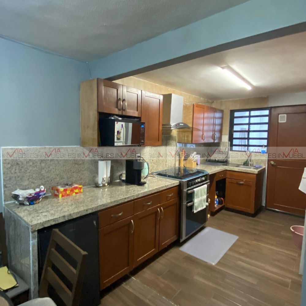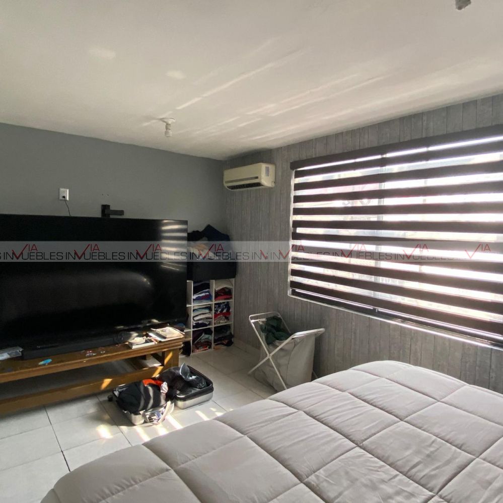 Hermosa casa de 3 recamaras, sala, comedor y cocina integral, con un baño completo en la primera planta, cochera para un auto, con portón automático, cámaras de seguridad, tres recamaras, la recamara principal con walk-in closet dos recamaras secundarias con un baño completo para compartir excelente ubicación muy cerca de la prepa 9 y Sam´s de Gonzalitos.