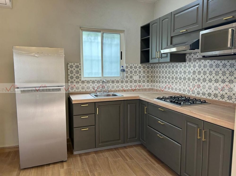 Dispone de cocina abierta equipada con estufa de gas, campana, microondas, refrigerador y mesa multifuncional apta como antecomedor o área de trabajo. Entre las recámaras se localiza un espacio versátil que puede funcionar como estancia, sala, estudio o área social.