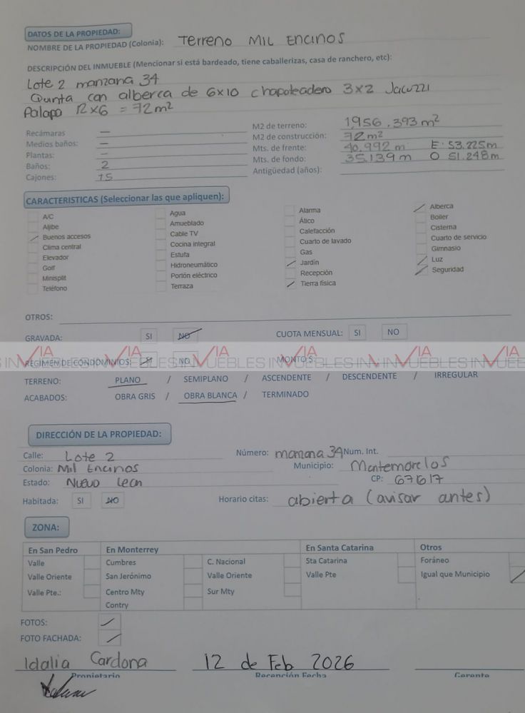 Ubicación: Lote 2, Manzana 34, Fraccionamiento Mil Encinos, Montemorelos, N.L.