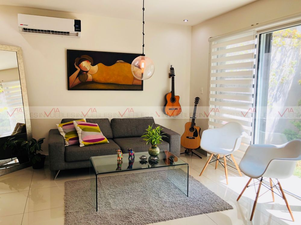 Residencia contemporánea de tres niveles en renta en el sector Cumbres Allegro, sector Atla. Arriba de Leones. Ubicada en entorno seguro dentro de fraccionamiento privado con seguridad 24/7.
