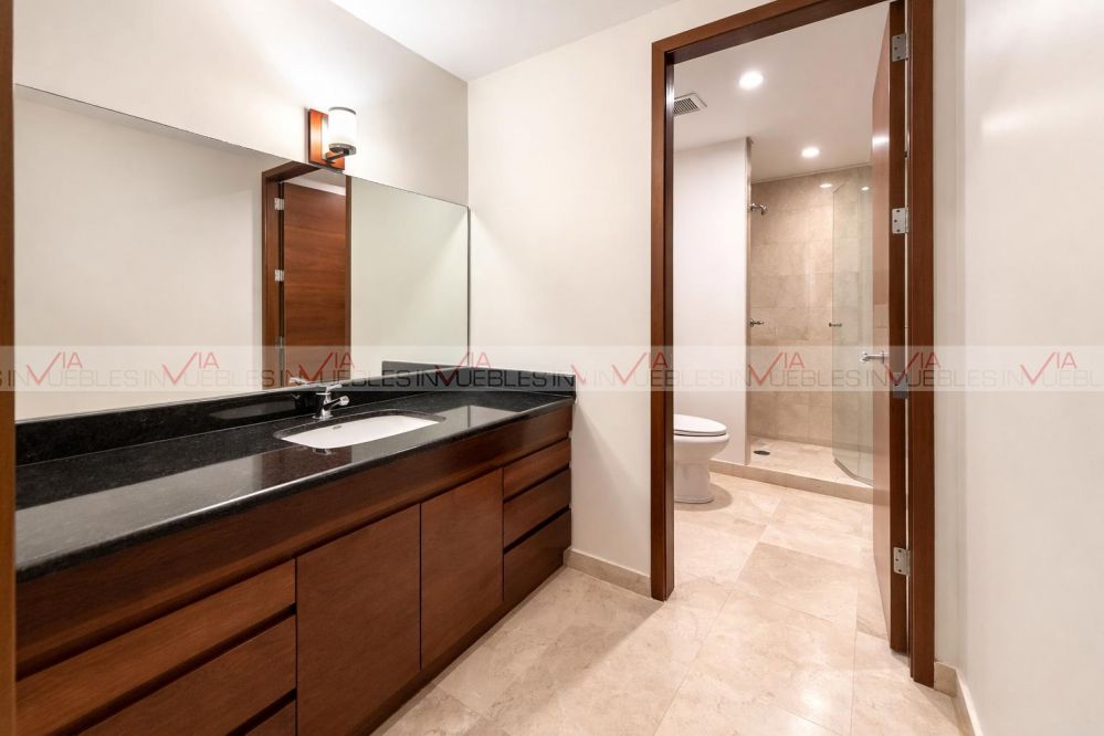 Cuenta con 3 recámaras; 2 comparten baño completo, además de medio baño de visitas. Incluye lavandería, sala-comedor, cocina equipada y cuarto de servicio con baño completo.