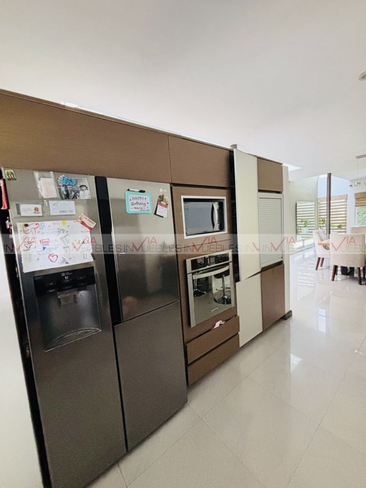 Hermosa Residencia en fraccionamiento privado al Sur de la Cd. con accesos controlados y seg.24/7, Privada con áreas comunes hermoso jardín, alberca, juegos infantiles, Palapa y Asadores. Accesos inmediatos a Carr. Nal., a 5 min HEB, Colegios, Hospitales y Centros Comerciales. La casa cuenta con 3 niveles, Primer nivel, cochera techada para 3 autos, 2 bodegas, sala, comedor, cocina, estancia muy amplia y baño completo. Cuarto de servicio con baño completo y lavandería. Segundo nivel cuenta con 3 recamaras c/u con baño-bastidor, muebles empotrados con escritorio, estancia tv, área closet-zinc y blancos. En tercer planta 1/2baño, bodega, cuarto de boiles y tinaco, área desatador y terraza panorámica a vistas espectaculares a la Sierra Madre. Estado excelente de conservación, únicos dueños.