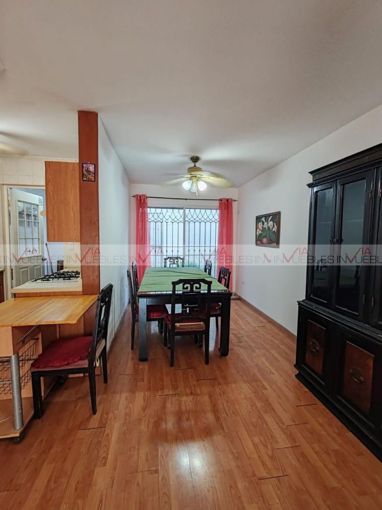 En planta baja consta de sala. comedor, cocina equipada con estufa, baño de visitas, patio y cochera para un vehículo y espacio para estacionar otro sobre la calle.