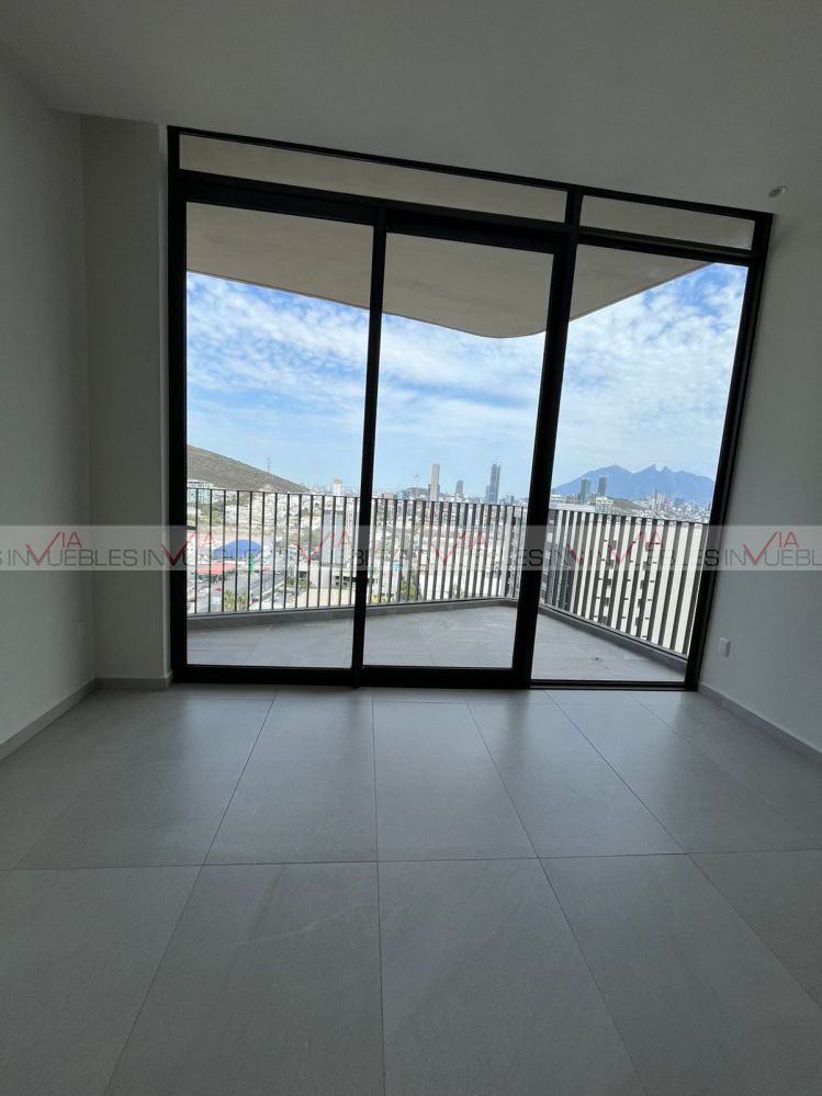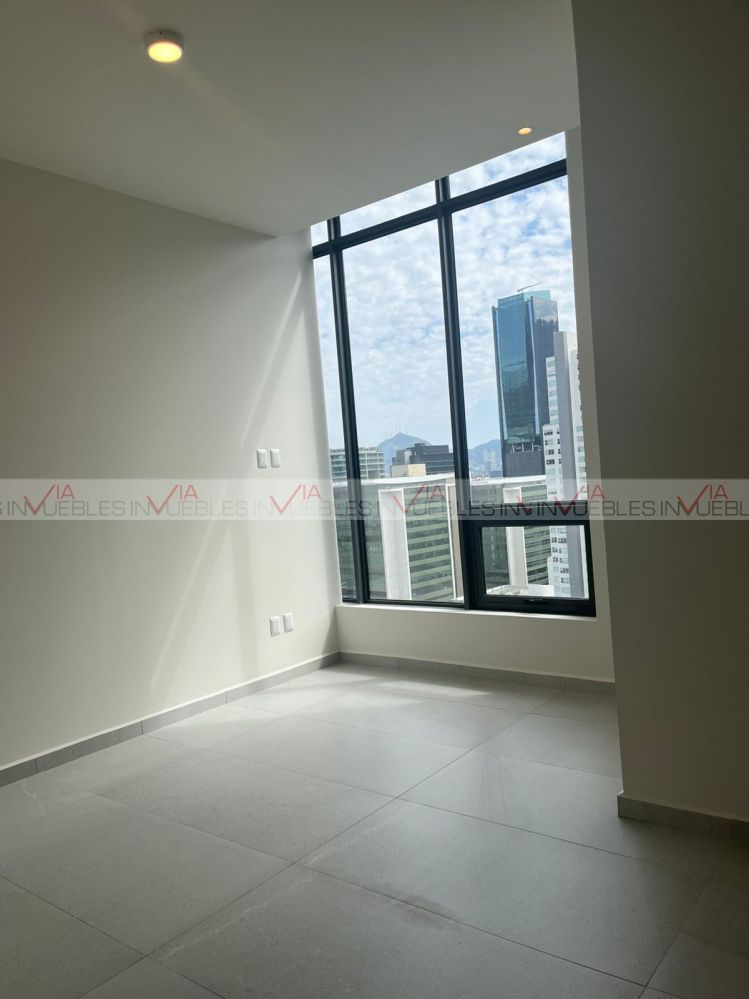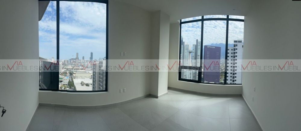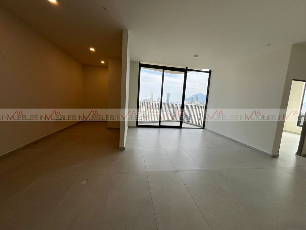 Exclusivo departamento en renta tipo PH ubicado en el piso 11 de edificio de reciente construcción en la zona de Santa María, una de las áreas con mayor conectividad en Monterrey, Distribución inteligente y funcional: 3 recámaras, Recámara principal con baño privado, doble lavaneta y vestidor. 2 recámaras secundarias que comparten baño completo. Medio baño de visitas Amplia sala ? comedor con excelente iluminación natural y hermosas vistas desde sus dos balcones ubicados estrategicamente para apreciar la belleza de los cerros de monterrey, cocina integral con diseño contemporáneo. Área de lavandería independiente. Cuarto de servicio con baño completo propio, una bonda en el área de estacionamiento de 10 mts cuadrados, dos cajones de estacionamiento, ubicados en el mismo piso de la bodega y acceso directo al elevador.