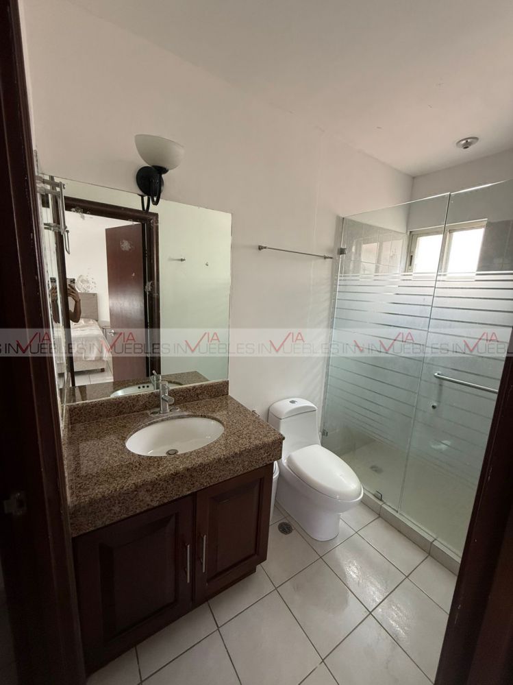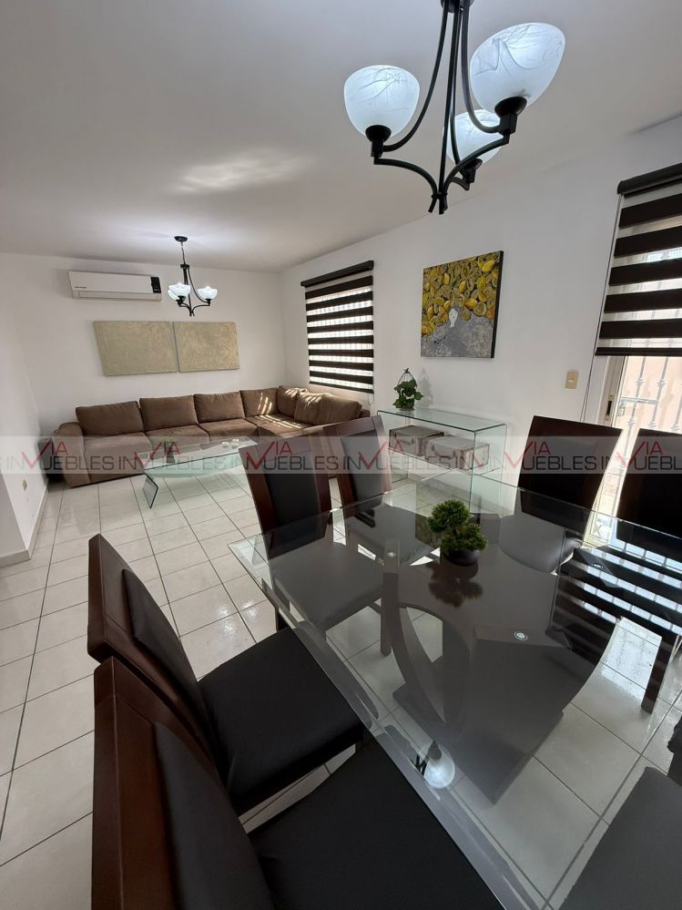 Hermosa casa en venta en Pedregal del Valle Apodaca, con 3 recámaras y 2 cajones de estacionamiento. Esta propiedad de 120M2 de terreno cuenta con 8 metros de frente y 15 metros de fondo. La construcción de 219 metros cuadrados incluye mantenimiento y está completamente amueblada y equipada. Además, cuenta con seguridad, minisplit, gas, luz, agua, cocina y permite mascotas. ¡Una excelente oportunidad!