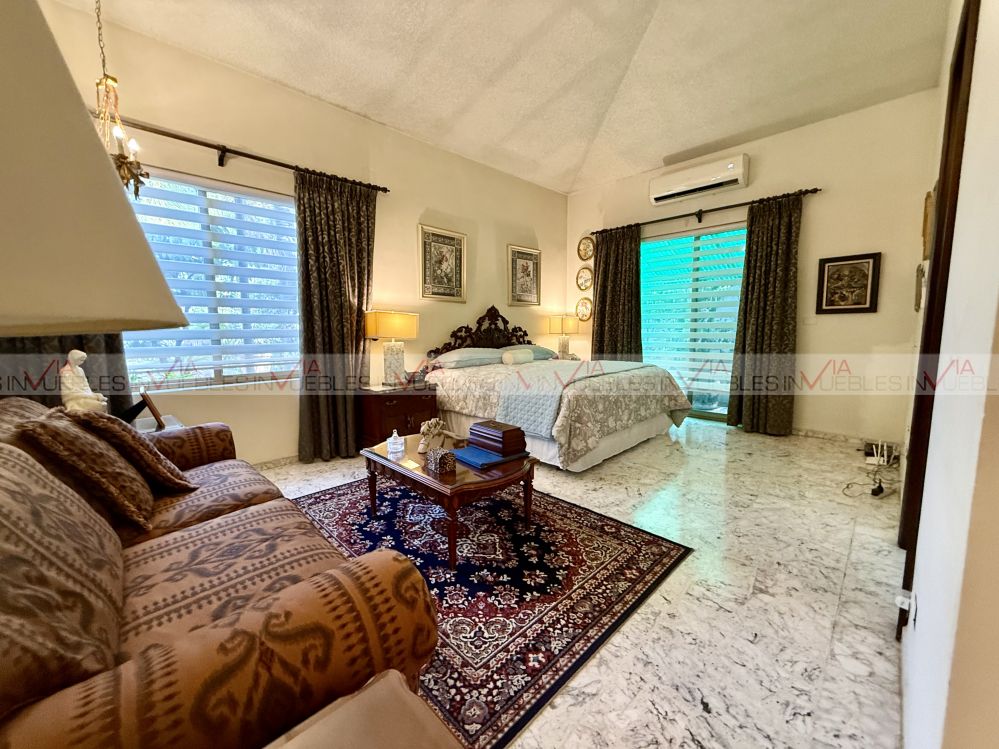 Casa en venta de 1500 m2 de terreno con 888m2 de construcción , en una de las mejores zonas de San Pedro como lo es la zona de los Ríos. Excelente opción para demoler y construir casa nueva o remodelar ya que la casa se encuentra en excelente estado de conservación. En un solo piso la casa cuenta con 4 recámaras cada una con su baño y walk in closet. Cuenta con una amplia sala y comedor, biblioteca con baño completo, cocina con ante comedor, cuarto de servicio y amplia lavandería , una terraza o amplia sala de TV techada con vista al patio y a la alberca. Cuenta con portones eléctrico y cochera para 4 autos. El patio tiene una variedad de arboles frutales como limones, naranjos, limas, etc