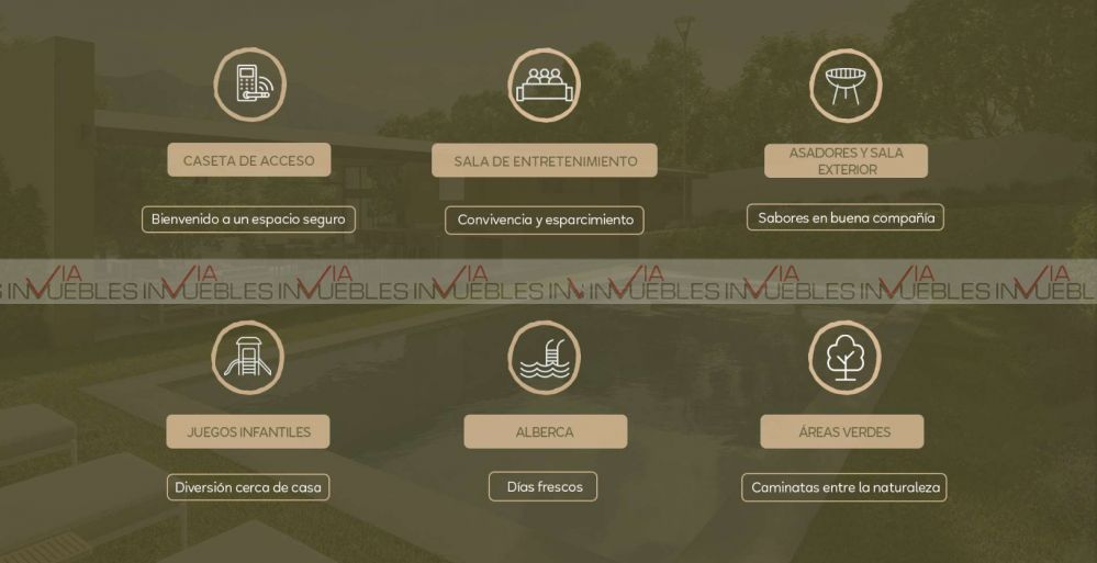 Cuenta con increíbles amenidades como son: palapa climatizada totalmente equipada, palpa exterior con asadores, preciosas áreas verdes con juegos infantiles, alberca, control de acceso 24/7.
