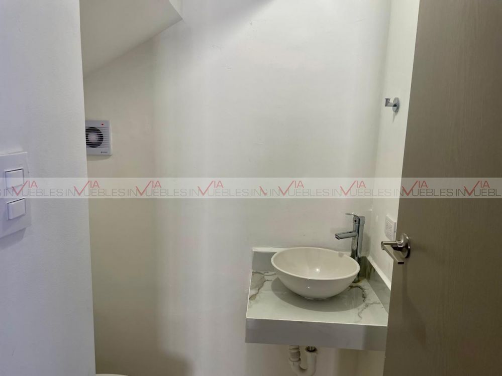 Planta baja con sala-comedor con minisplit, cocina de concepto semi-abierto equipada con estufa y campana, baño de visitas, lavandería y cochera techada para 2 vehículos. Espacio en banqueta para estacionar 2-3 vehículos.