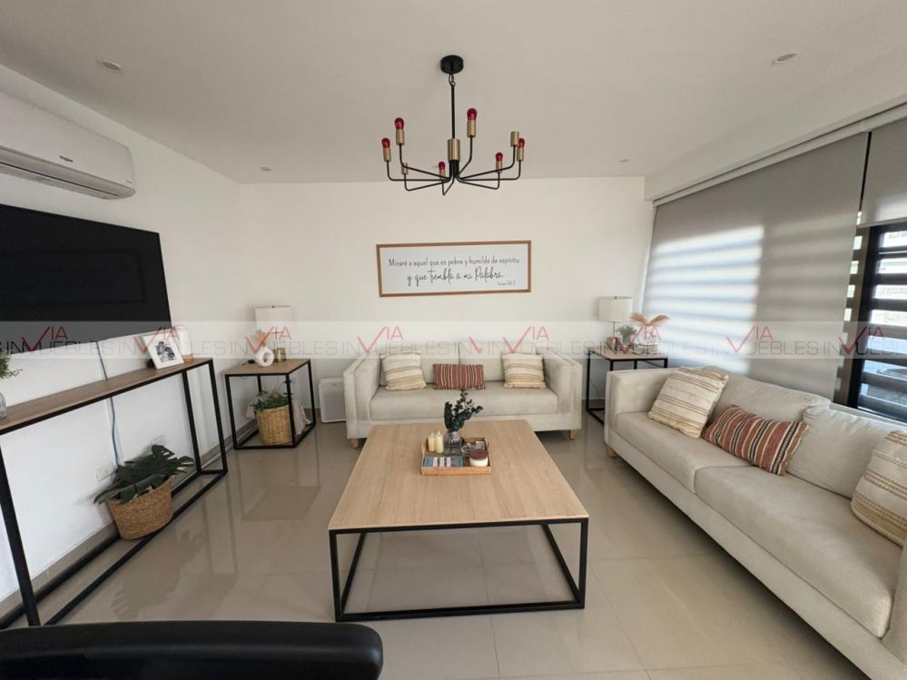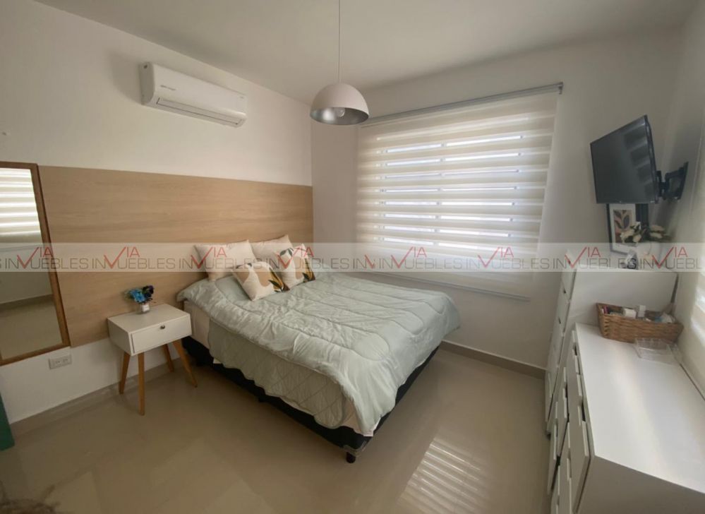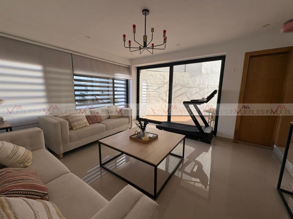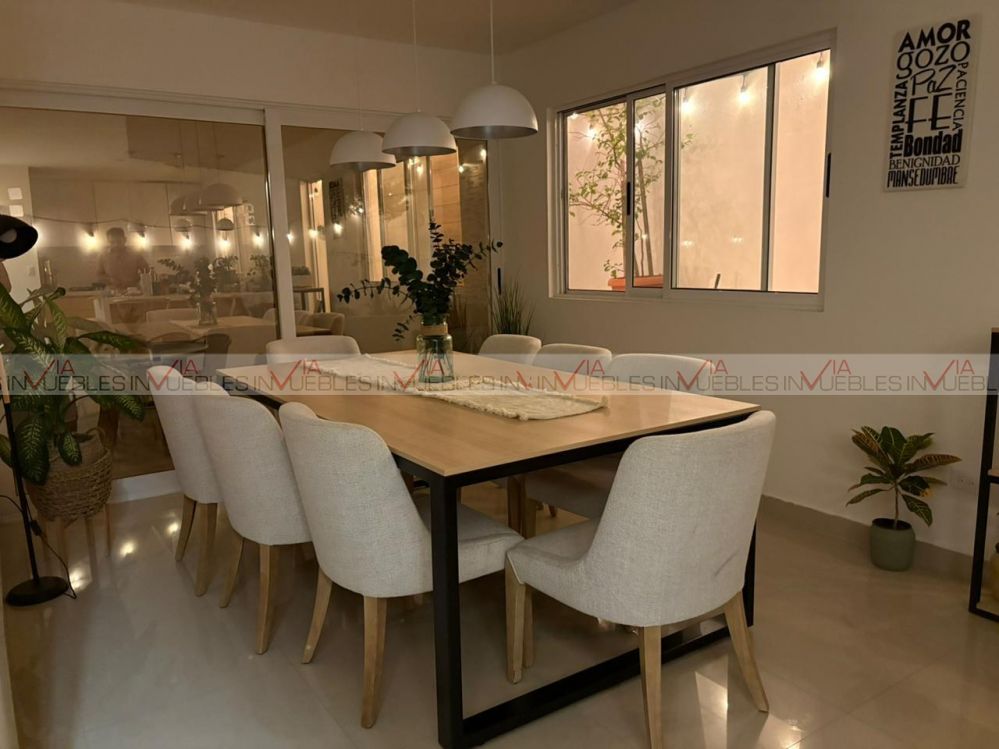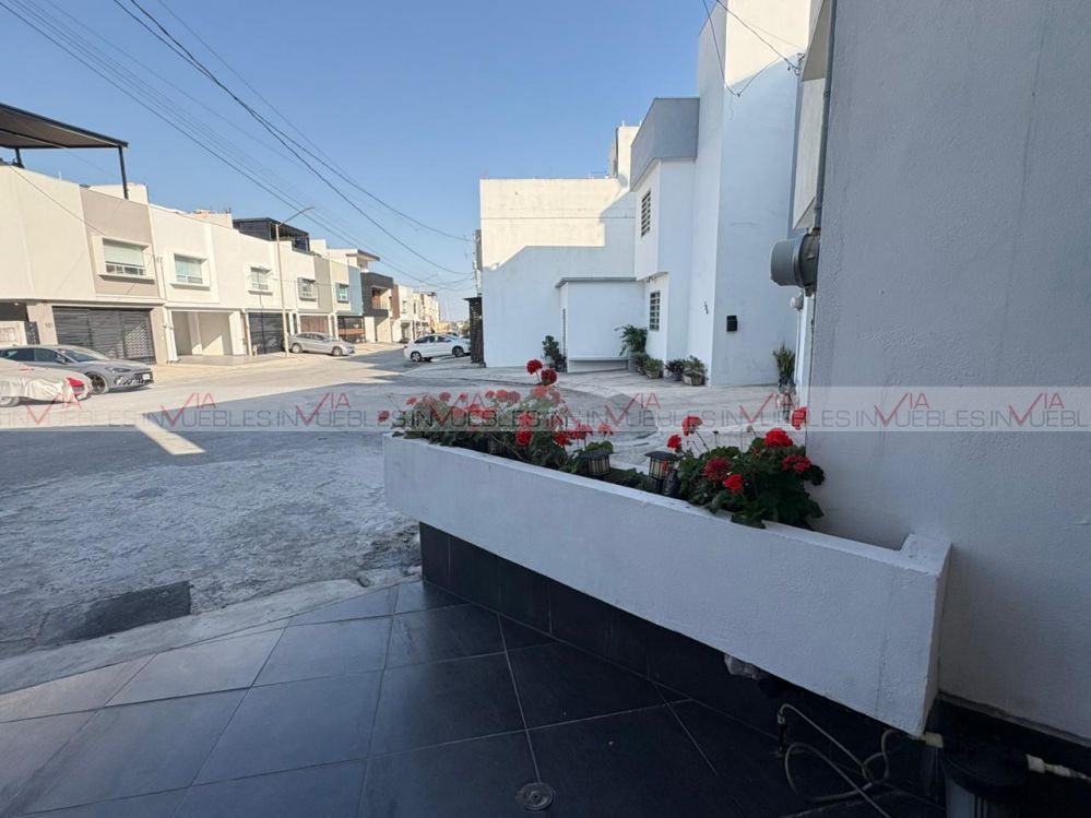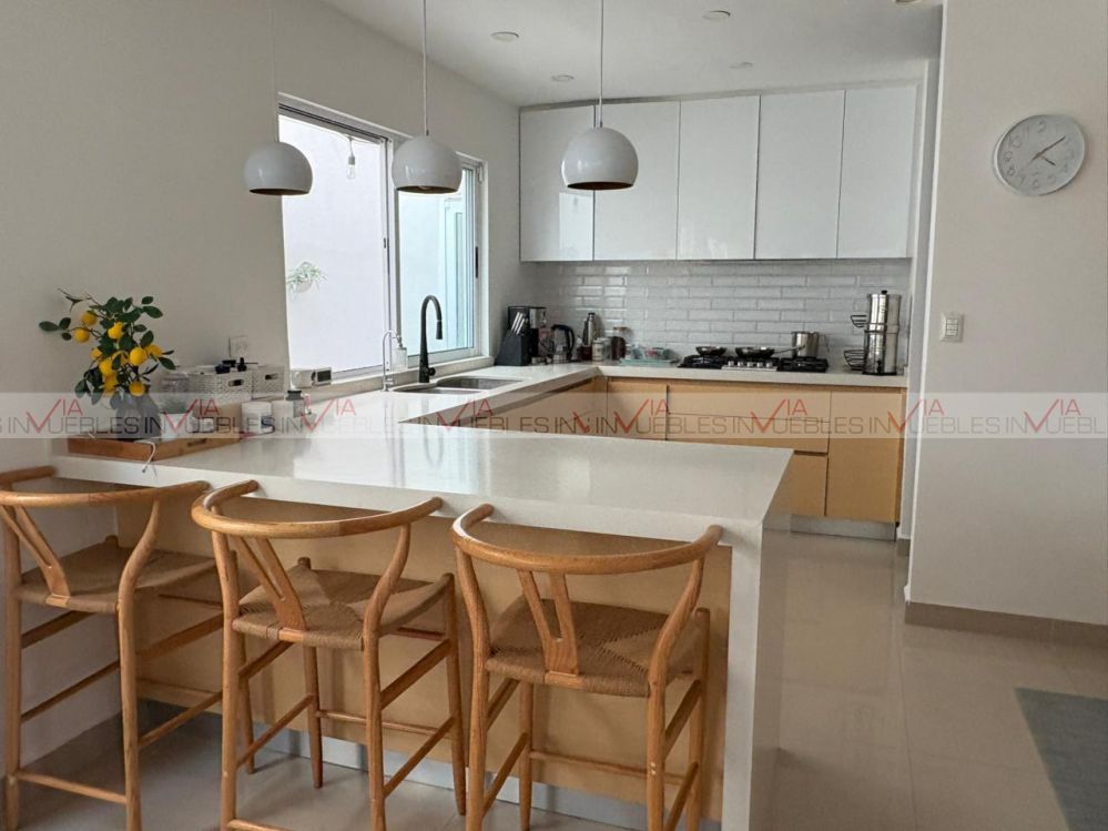 Hermosa casa con excelente iluminación natural, ventanales grandes y terreno excedente con patio* Ubicada en privada con seguridad y amenidades. Cuenta con 3 habitaciones con clóset, 3 baños completos, closet grande en estancia, 2 escritorios con libreros. Equipamiento: 6 minisplits, boiler para 5 regaderas, tinaco. Cocina nueva de cuarzo: Estufa, horno empotrado, campana oculta, lavandería remodelada. Extras: Terreno excedente con patio y barda elevada, sin vecinos al frente, mucha iluminación natural. A solo 10 minutos del estadio BBVA, frente a plaza Arcadia. Privada con seguridad 24/7 y amenidades (parque grande, cancha de futbol, juegos infantiles, áreas verdes y aparatos de ejercicio