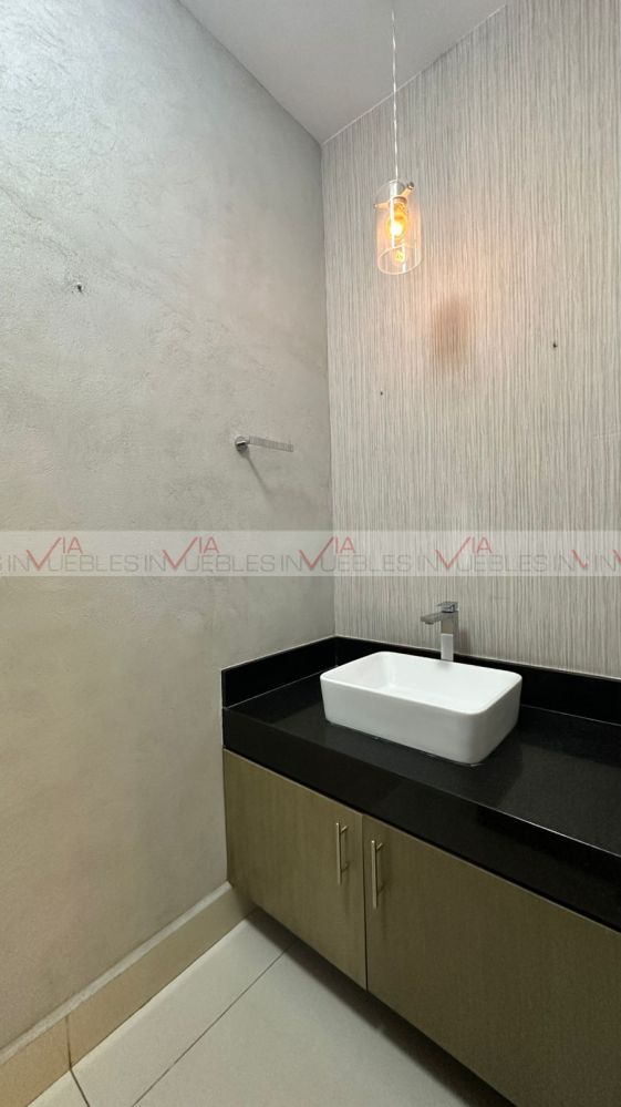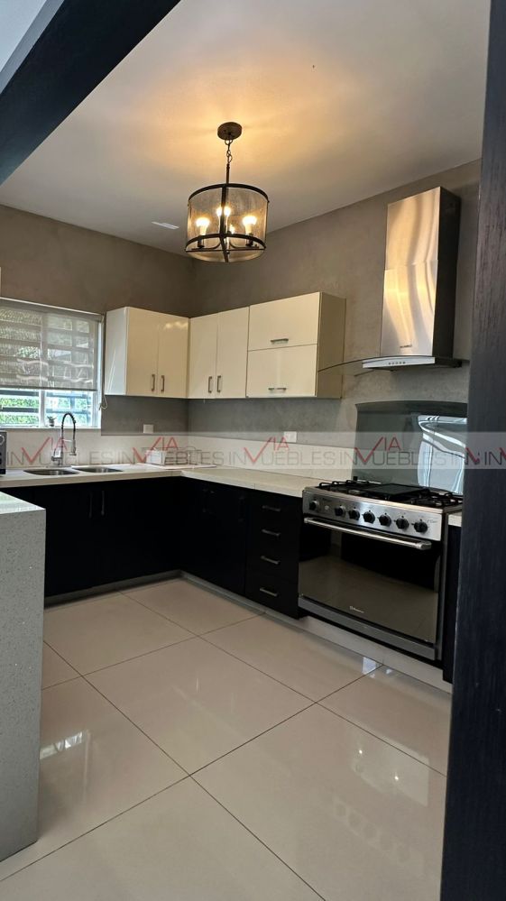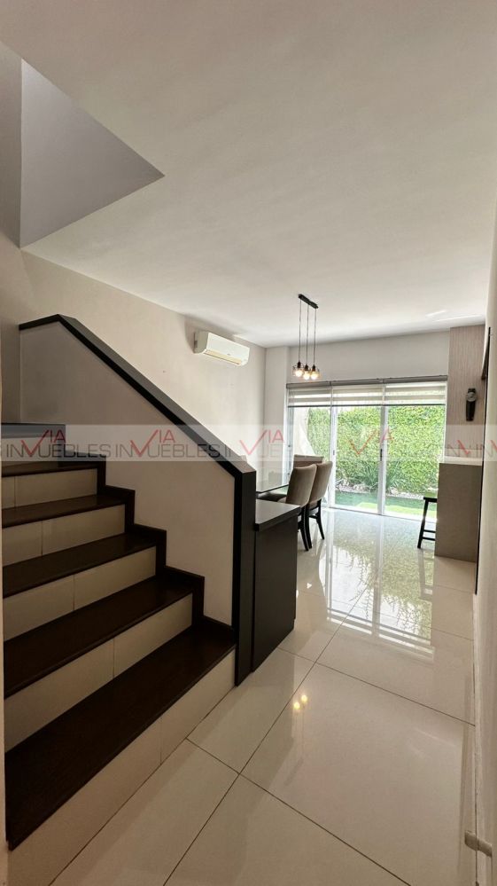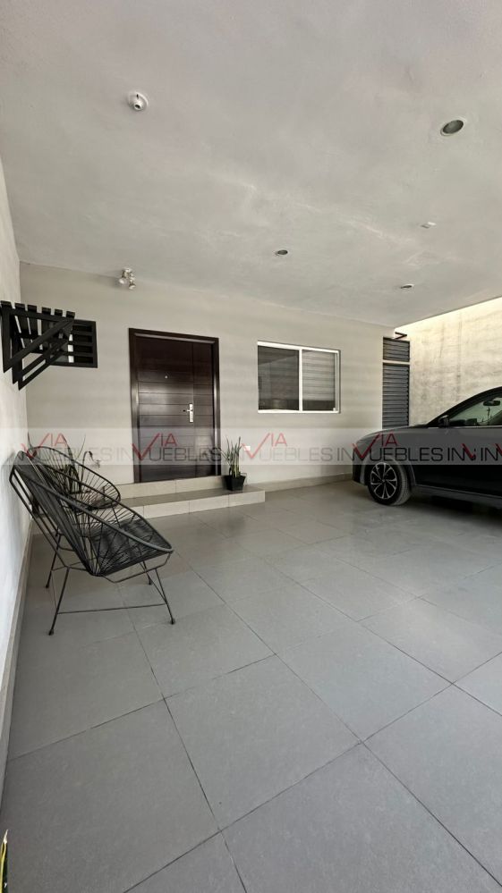Cuenta con cochera para dos autos con portón eléctrico doble, recibidor, medio baño para visitas, amplia sala, cuarto de almacén, espacioso comedor y hermosa cocina equipada con barra de piedra de cuarzo.