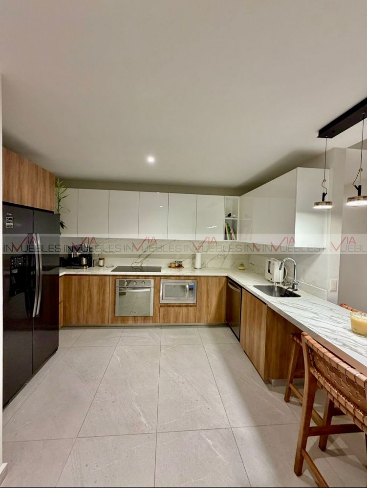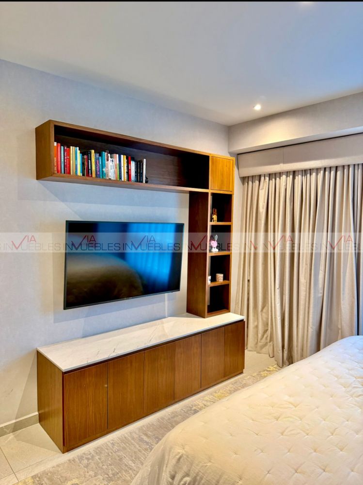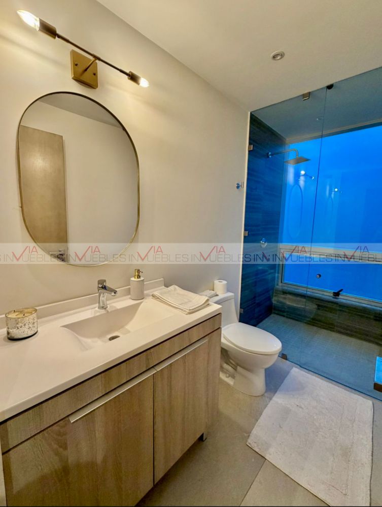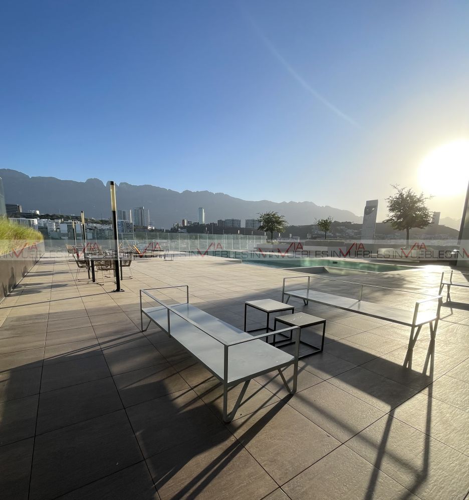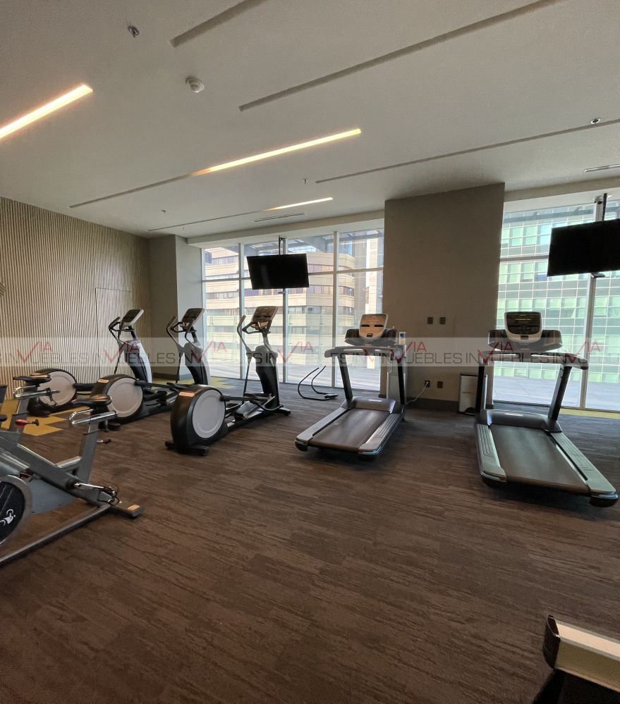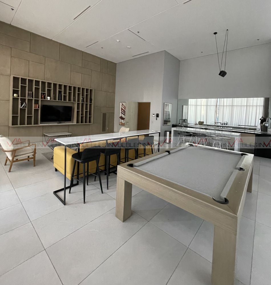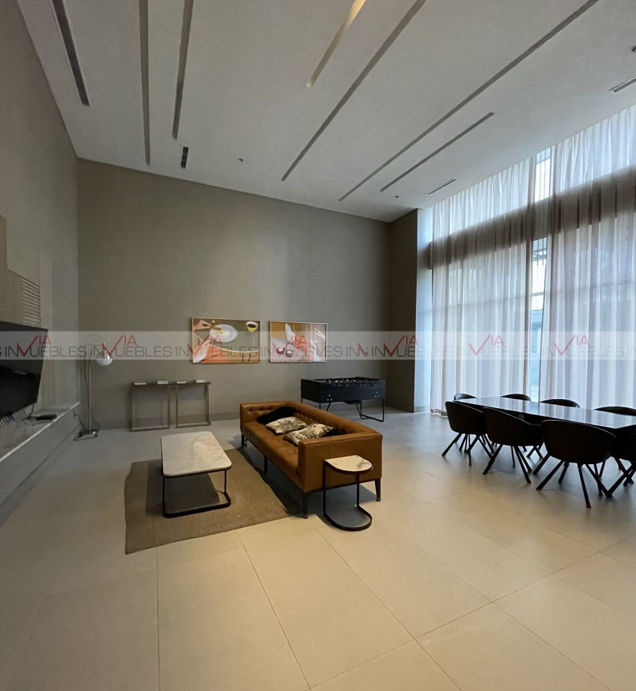 hermoso departamento completamente amueblado y equipado con electrodómesticos, todo de muy biuen gusto y calidad, es de 108m2, cuenta con 2Rec, 2 baños (uno de ellos es walking closet y 2 cajones de estacionamiento. mini splits, cortinas, terraza con vista a torre Rice, centro de lavado, muebles modernos, bar, y la torres ademas cuenta con 3 elevadores y diversas amenidades, como alberca, gim, ludoteca, suites, salas lounge, salones para eventos, terraza panorámica, super 7, Tm Hortons, Farmacia etc.