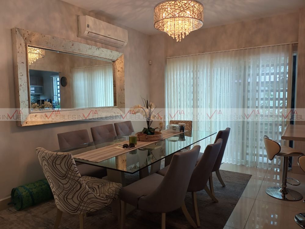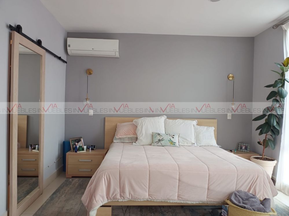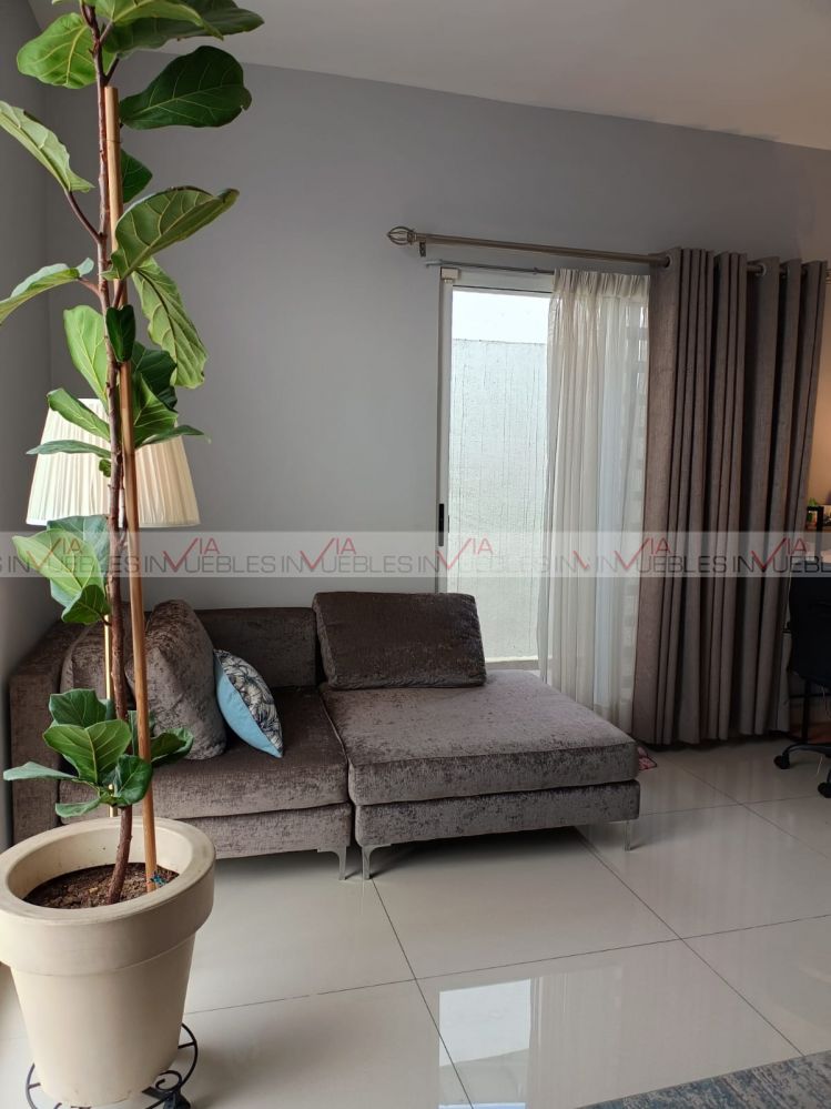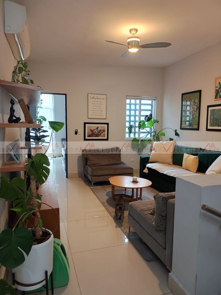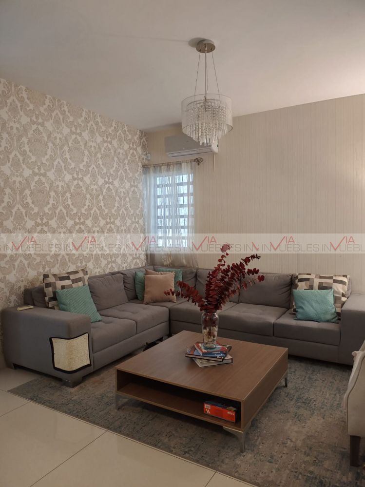 Hermosa, elegante y acogedora casa en Puerta de Hierro, totalmente amueblada y equipada, 150 m2 de terreno, 214 m2 de construcción, 3 recámaras (principal con walkin-closet y baño completo, puerta corrediza con espejo, las otras 2 recámaras comparten baño), hermosa cocina integral con estufa, campana decorativa e isla, 6 minisplits inverter frio/calor, acabados en papel tapiz en áreas sociales y baño social, cortinas y persinas en todas las áreas, persiana doble vista con tela de velo en comedor lo que le da un toque de elegancia en el comedor, lámparas decorativas, cortinas black-out y de velo en hermosa ventana a la altura de techo en recámara principal y ventanal de terraza que cuenta con vista al cerro, todos los closets y roperías, el de recámara principal cuenta con hermosa puerta corrediza con espejo instalada, elegante librero con sofa-cama en recámara secundaria instalado, muebles de baño, espejos en los baños y canceles de vidrio, elegante cancel de vidrio en escalera con pasamanos en acero inoxidable, lavandería techada con elegantes gabinetes, bodega, todas los protectores de ventanas y puertas, patio con piso y barda alta con picos,16 PANELES SOLARES, CISTERNA DE 5,000 LTS Y TINACO DE 1000 LTS con bomba hidroneumática, fraccionamiento privado con seguridad 24/7, caseta de vigilancia, parque con casa club y amenidades como hermosa cancha de futbol, juegos infantiles, alberca, hermosas áreas verdes. Localizada a dos cuadras de Paseo de los Leones y super principales como HEB, Walmart, colegios, zonas comerciales. Precio de renta con mantenimiento incluido.