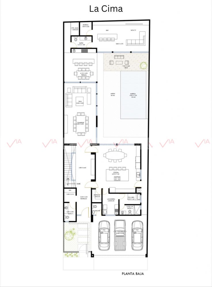 La casa está diseñada para el máximo aprovechamiento de espacios y luz. Cuenta con acabados
