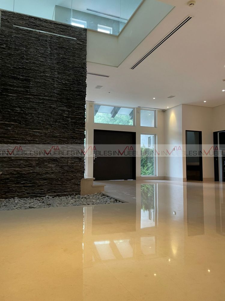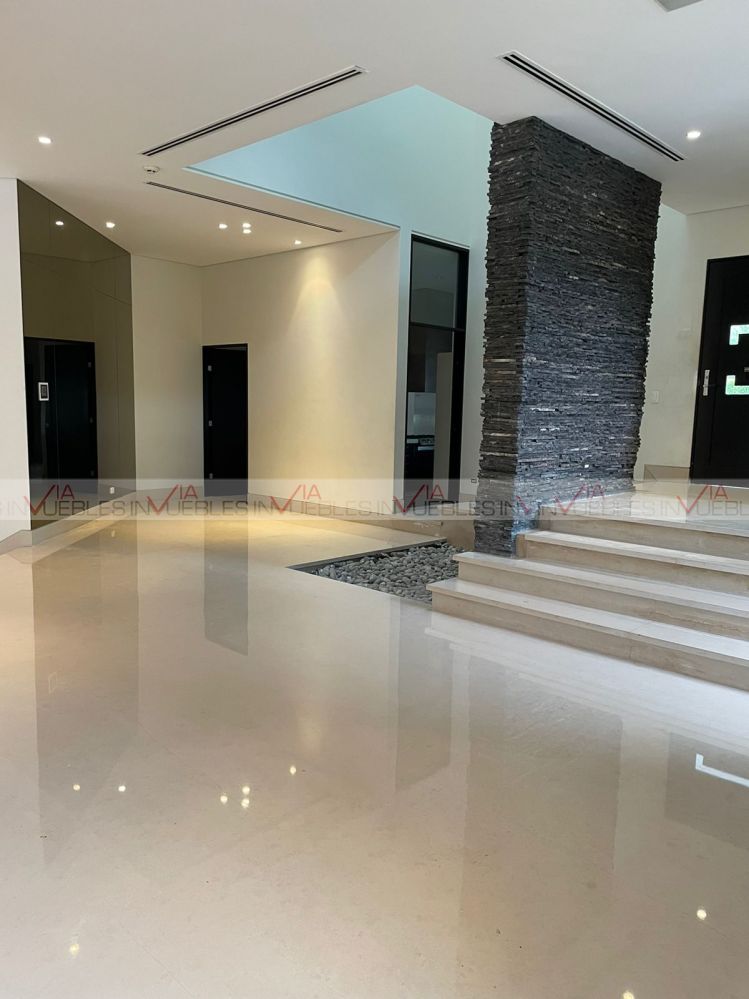 Recibidor doble altura enmarcado por una hermosa fuente interior