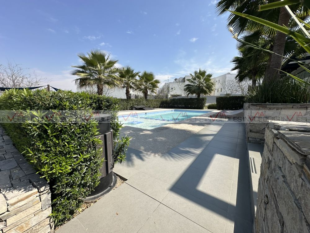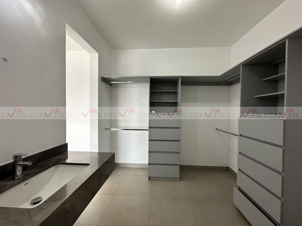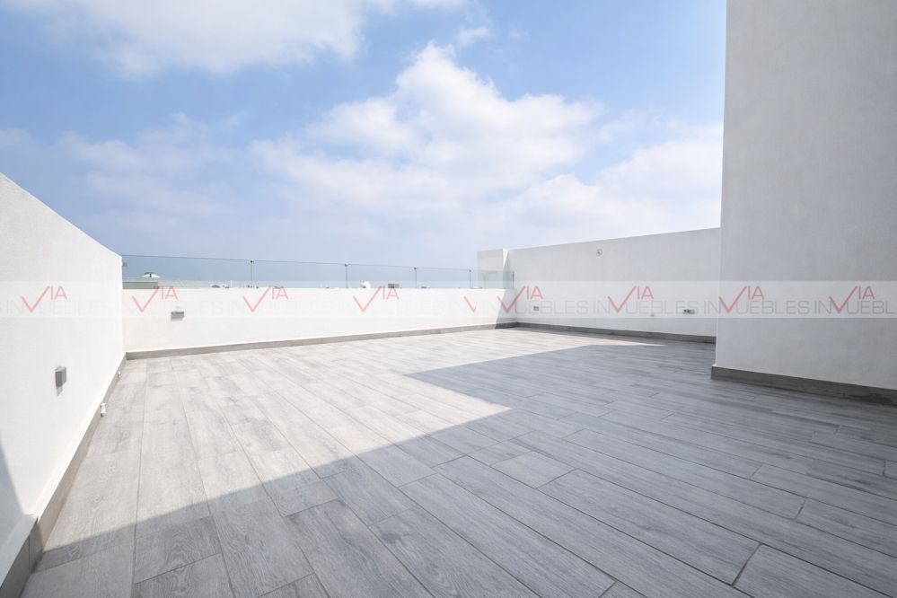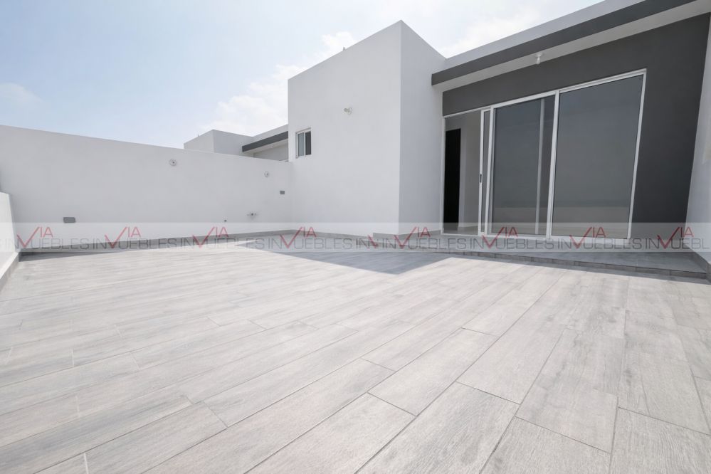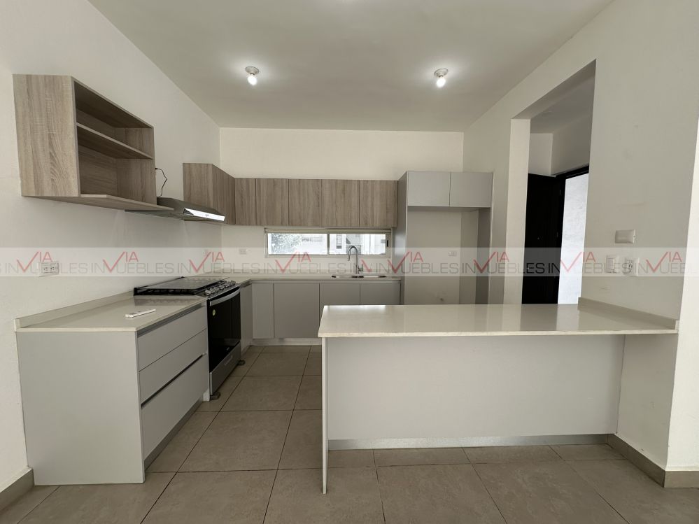 Casa en renta Novelia Dominio Cumbres, con arquitectura moderna, espacios amplios, abiertos e iluminados. Cuenta con 3 niveles, 3 recámaras, 3 1/2 baños, patio, área social, terraza y 2 cajones de estacionamiento. Esta propiedad es perfecta para ti ya que se encuentra equipada con cocina, estufa, closets, minisplit inverter frio-calor, boiler, tinaco y persianas. Disfruta de sus amenidades alberca, áreas verdes, asadores, pet park, ejercitadores al aire libre, cancha y juegos infantiles con vistas espectaculares a la montaña y ciudad. Esta casa ofrece comodidad, exclusividad y seguridad las 24 horas. Propiedad ubicada cerca de parque, arriba de Av. Leones 3 min, cerca de HEB, Hospital Muguerza, colegios, gimnasios, canchas de pádel, tiendas de conveniencia y plazas comerciales. Acepta mascota. Requisitos 1 mes de renta, 1 mes de depósito y póliza jurídica.
