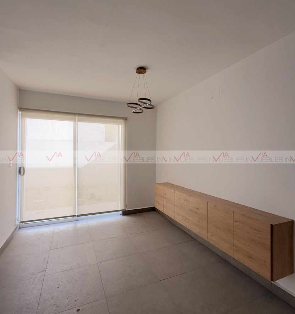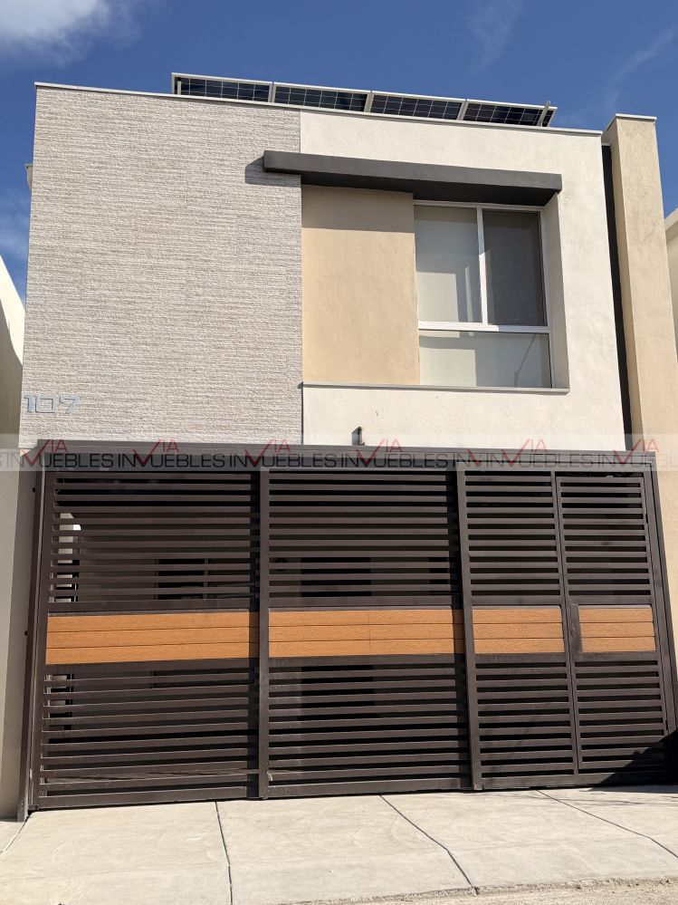 Casa para rentar, nueva para estrenar en Residencial Torento, con 3C , paneles solares, portón, cocina, climas, closets, candiles y un mueble de madera en toda la pared de sala y espejos. En las áreas sociales hay alberca, juegos infantiles, pista y salón de eventos.