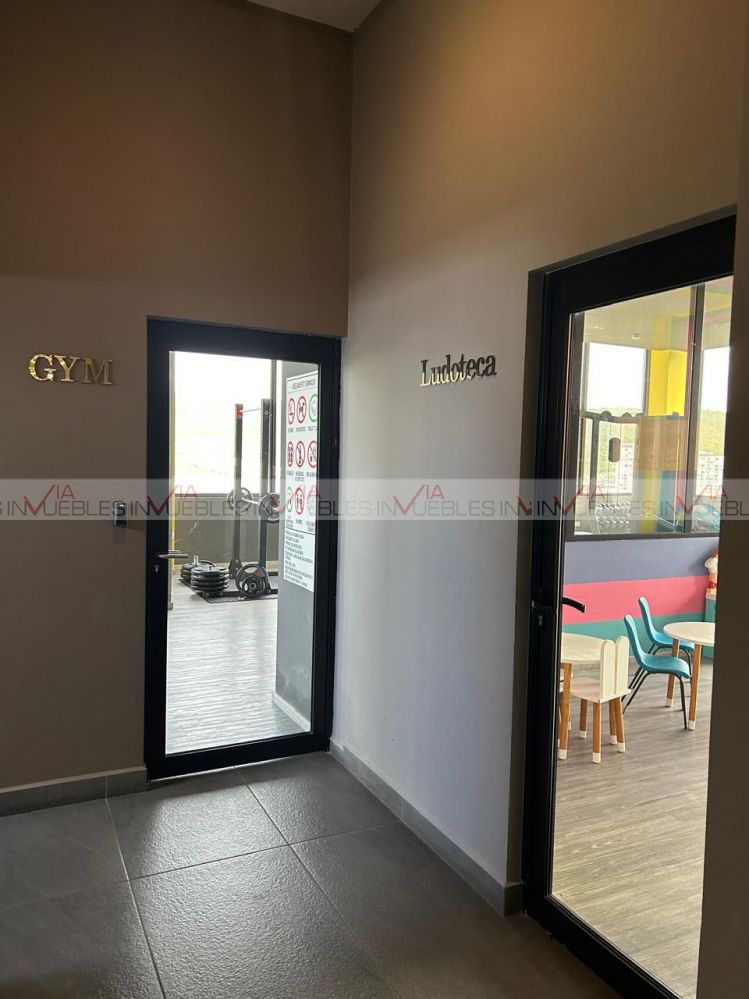 La torre ofrece amenidades en terraza como alberca, gimnasio, salones de eventos, además de jardín, ludoteca, asador y seguridad privada.