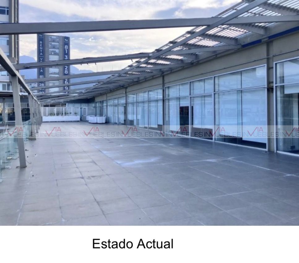 Local comercial ubicado en Plaza Comercial, sobre Av. Eugenio Garza Sada. En planta alta, consta de 1254 metros, de los cuales 827 mts corresponden a dos locales contiguos e incluye 427 mts de terraza. Ideal para giros restauranteros, que buscan máxima exposición y tráfico continuo. Se encuentran tiendas ancla dentro de la plaza como salón de fiestas infantiles y tienda de conveniencia. Incluye mantenimiento. No incluye IVA. Plazo mínimo 36 meses.