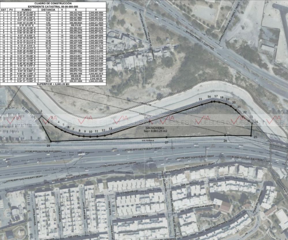 Terreno industrial de 8,883 m² en San Pedro Garza García, Nuevo León, con 5,900 m² construibles.