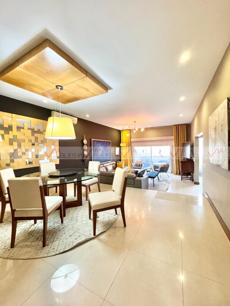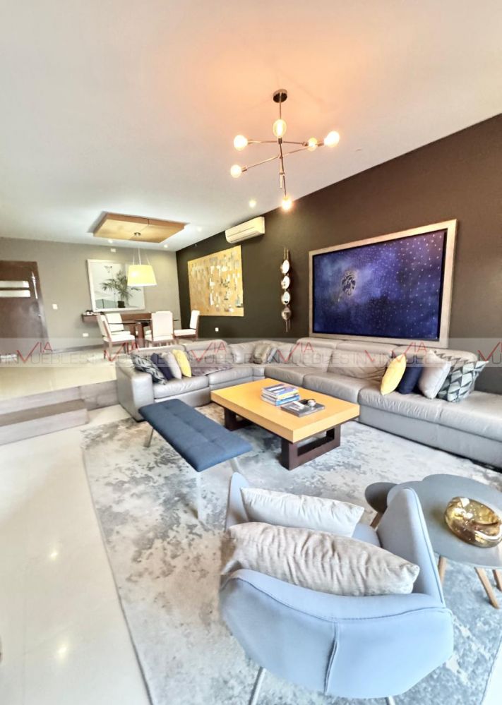 Desde su elegante acceso, te recibe un amplio recibidor que conecta con una sofisticada sala y comedor, integrados de forma armoniosa hacia una gran terraza exterior, ideal para reuniones y momentos inolvidables.
