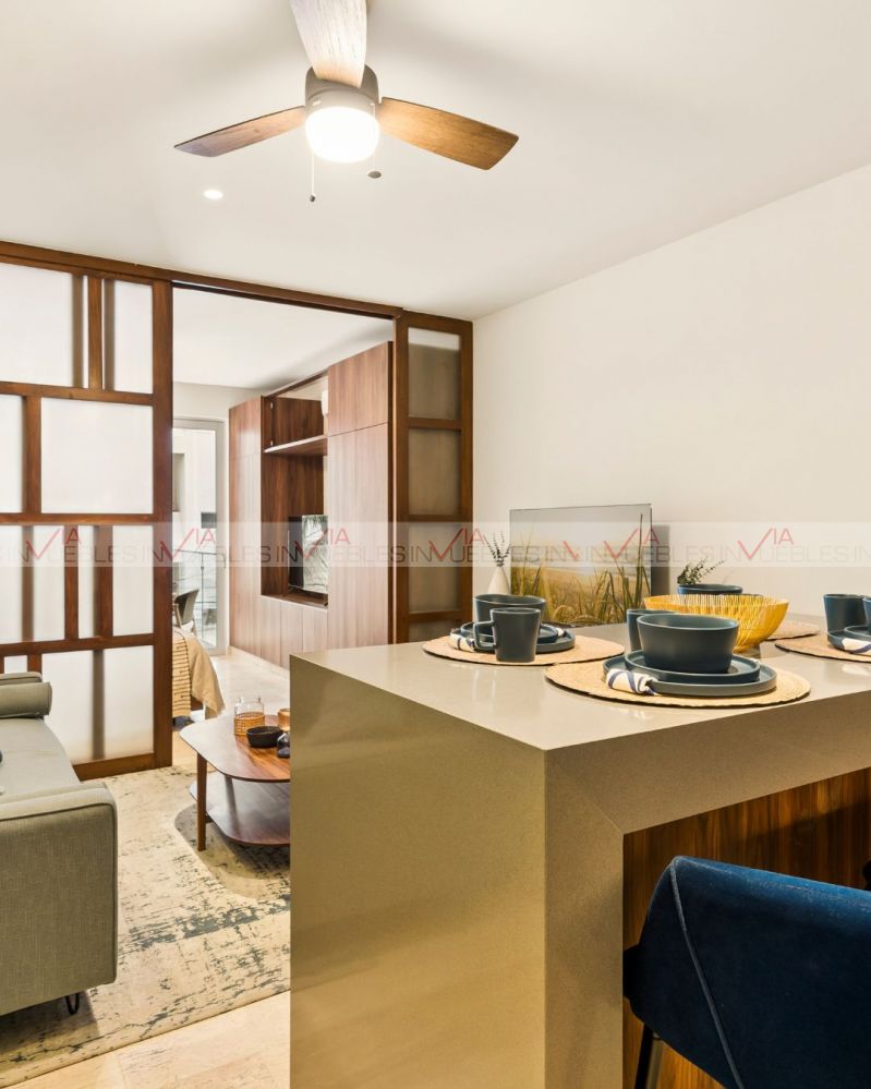 El departamento es de 1 recámara y se encuentra en primer piso, listo para escriturar. Se entrega equipado con: Cocina, refrigerador, parrilla eléctrica, tarja, Aire acondicionado, Ventilador de techo, Closets y gavetas y una división tipo panel para separar el dormitorio del área de sala y cocina.