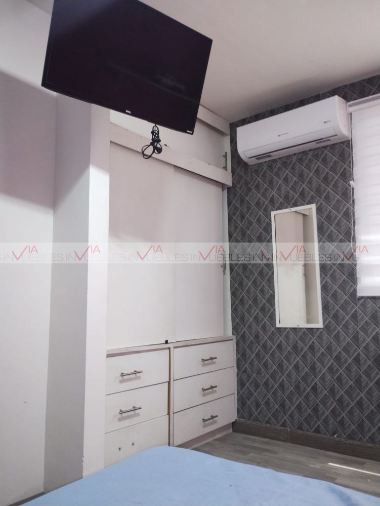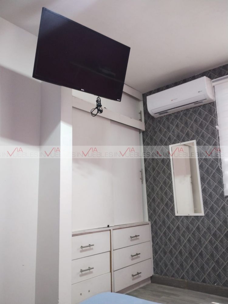 Recámara secundaria con cama matrimonial, TV, closet y minisplit
