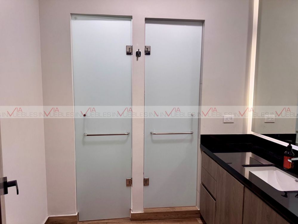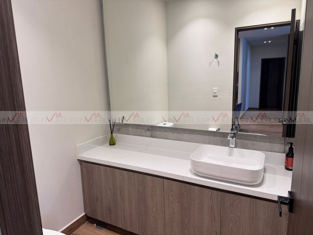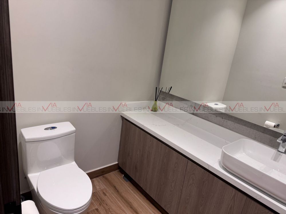 Disfruta de esta comodidad en 124mts con 2 recamaras cada una con su closet y baño completo, área social abierta con cocina, antecomedor, sala y bar, terraza con vistas a la Huasteca de 10mts, lavandería, medio baño de visitas.