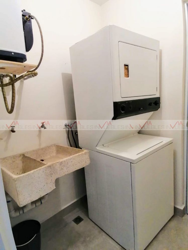Cuenta con cocina integral, cuarto de lavado, sala-comedor, recámara principal con vestidor y baño; recámara secundaria con closet y baño a compartir con área social. Un cajón de estacionamiento techado.