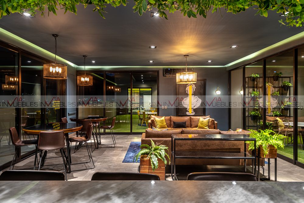 Amenidades: sports bar, asadores y alberca de 4 niveles. Co-working, ludoteca, gimnasio, áreas verdes, juegos infantiles, acceso controlado, parque para mascotas, cancha de futbol y basquetbol.