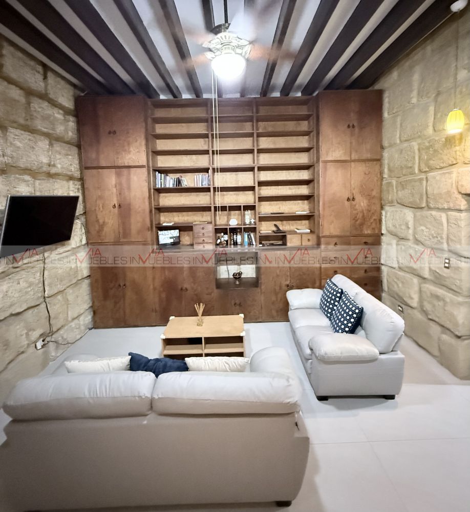¡Oportunidad única en el corazón de Monterrey! Descubre el equilibrio entre el encanto del Monterrey antiguo y la sofisticación contemporánea. Está propiedad de mas de 50 años ha sido meticulosamente restaurada, conservando su esencia original como sus paredes de arcilla y sus puertas pero con una actualización total. Desde las tuberías, pisos, cocina, baños, iluminación y acabados todo ha sido renovado para ofrecer funcionalidad. La propiedad consta de 2 plantas, sus espacios con iluminación acogedora que resaltan su diseño interior. En la PB Cocina integral totalmente nueva; baño completo y remodelado, area de lavandería y patio trasero. Estancia con un espectacular librero de piso a techo; sala comedor con amplio espacio y un tapanco sobre el comedor que puede tener diferentes usos, como área de juegos, cava, sala de lectura, etc. En la 2a planta recamara principal y secundaria que comparten baño completo cada una con su closet de piso a techo. Equipada con abanicos de techo, minisplits y tiene su estacionamiento exclusivo para mayor comodidad. Ideal para vivir o como inversión de alta rentabilidad por su ubicación estratégica. ¡ Agenda tu cita hoy mismo y conoce esta propiedad única que combina tradición y confort moderno!