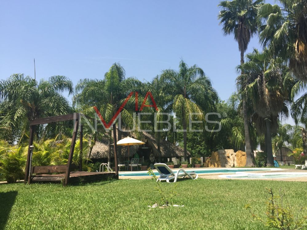 Preciosa Quinta con amplio jardín con cancha de futbol, aviario, palapa bar, alberca con cascadas y chapoteadero, casa para empleados. La casa principal es de 4 recamaras, sala, comedor, cocina integral. Se vende completamente equipada con todos los equipos de cocina y amueblada en recamaras y salas en piel, con minisplits en cada área, 4 baños completos y 2 medios baños en el exterior. Se vende con todo el mobiliario que aparece en las fotografías.