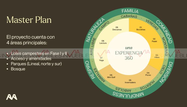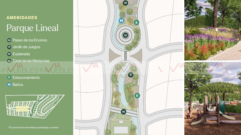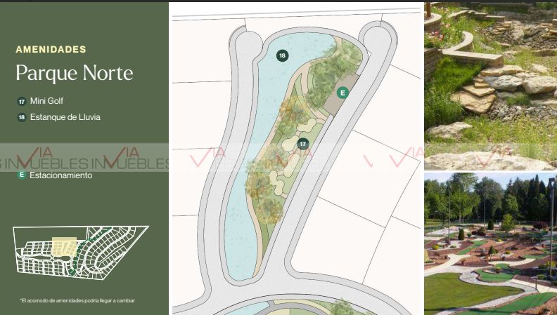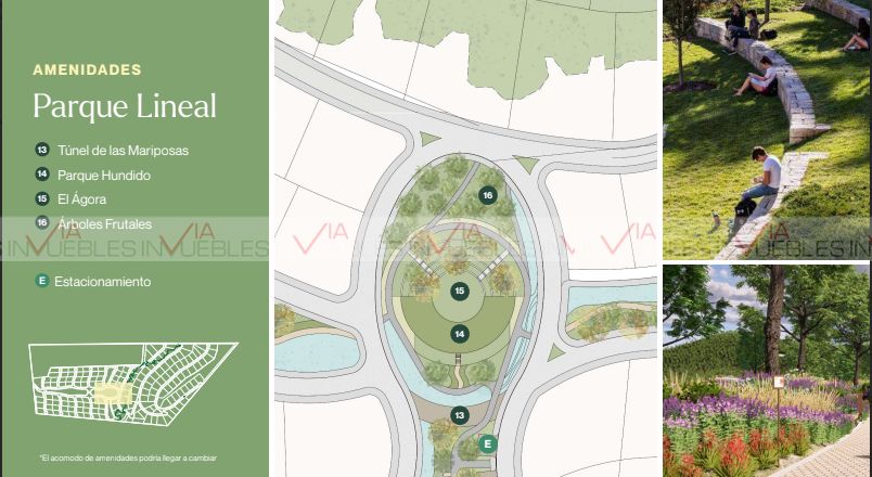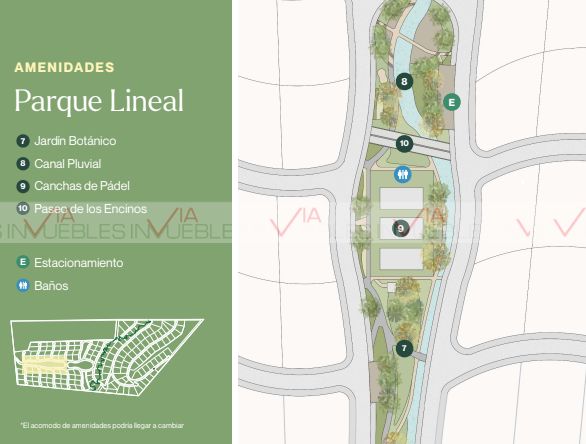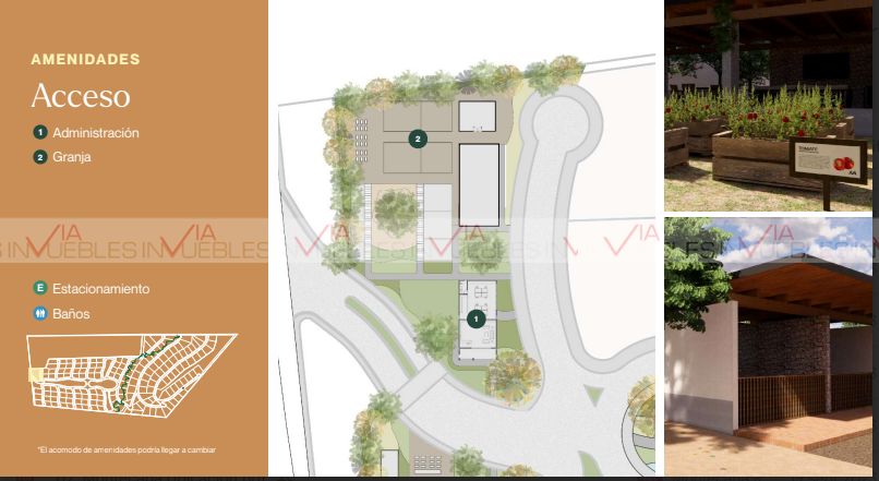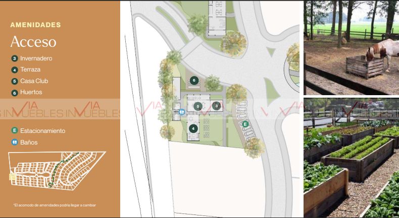 Contarà con amenidades tales como Granja, Invernadero, Huertos, Terraza, Casa Club, Jardìn Botànico, Canal Pluvial, Canchas de Padel, Paseo de los Encinos, Contarà con Administraciòn al tèrmino de la entrega del Proyecto .