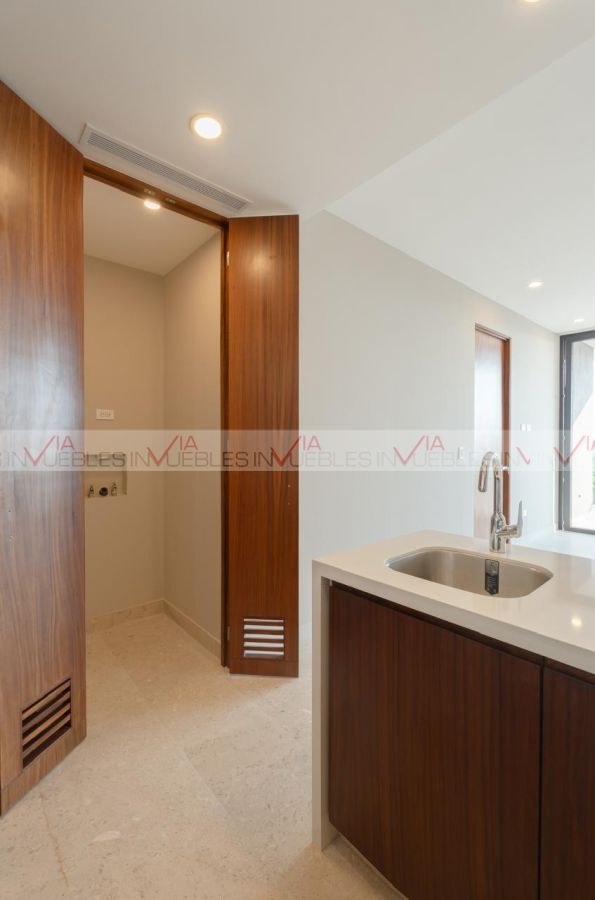 El departamento cuenta con amplio balcón, sala, comedor, cocina con madera de pino y chapa de madera de parota, totalmente equipada con electrodomésticos de alta gama y cubierta de cuarzo.