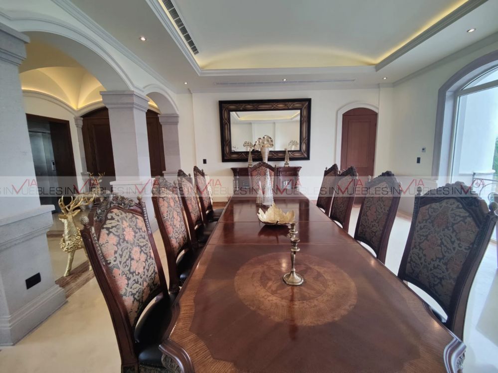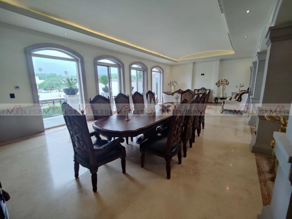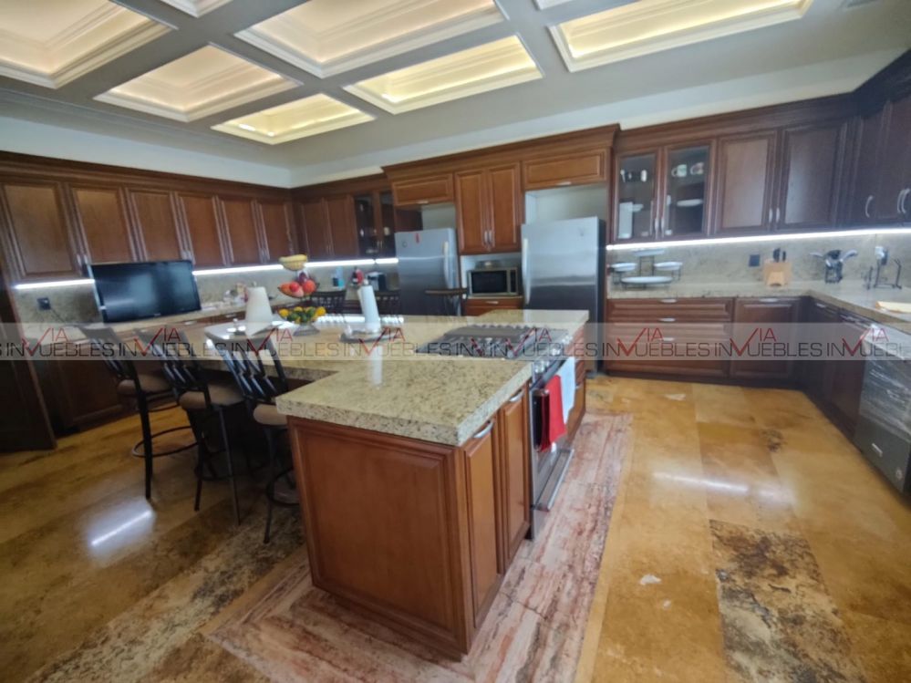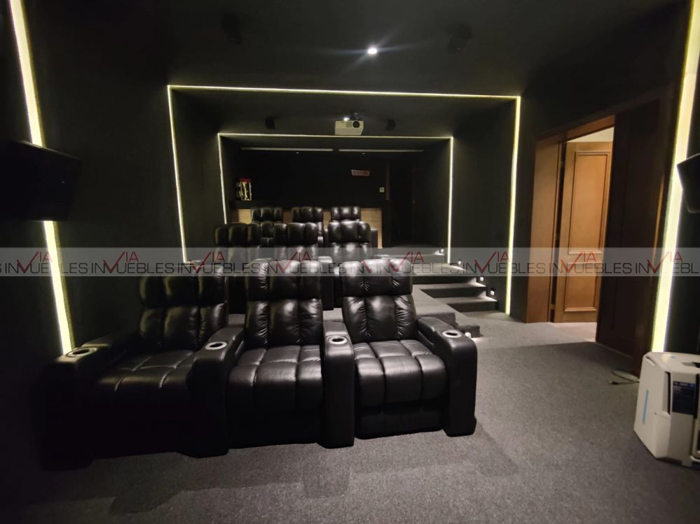 6 recamaras cada una con baño y vestidor, estancia, estudio, sala de cine, gimnasio, terraza con jacuzzi, cuarto de servicio con entrada independiente, lavandería, patio amplio con alberca con palapa, asador y bar. 42 paneles solares
