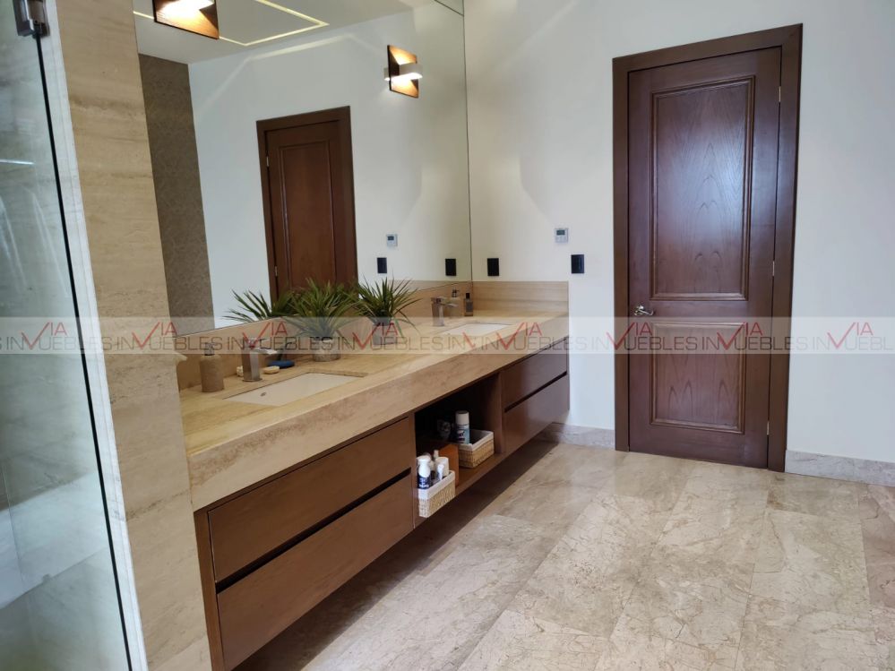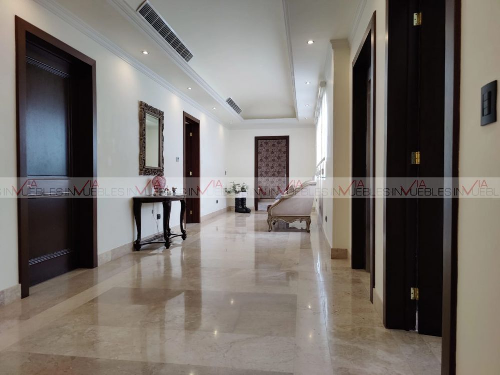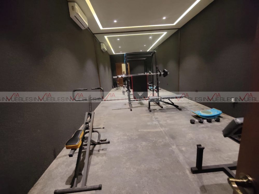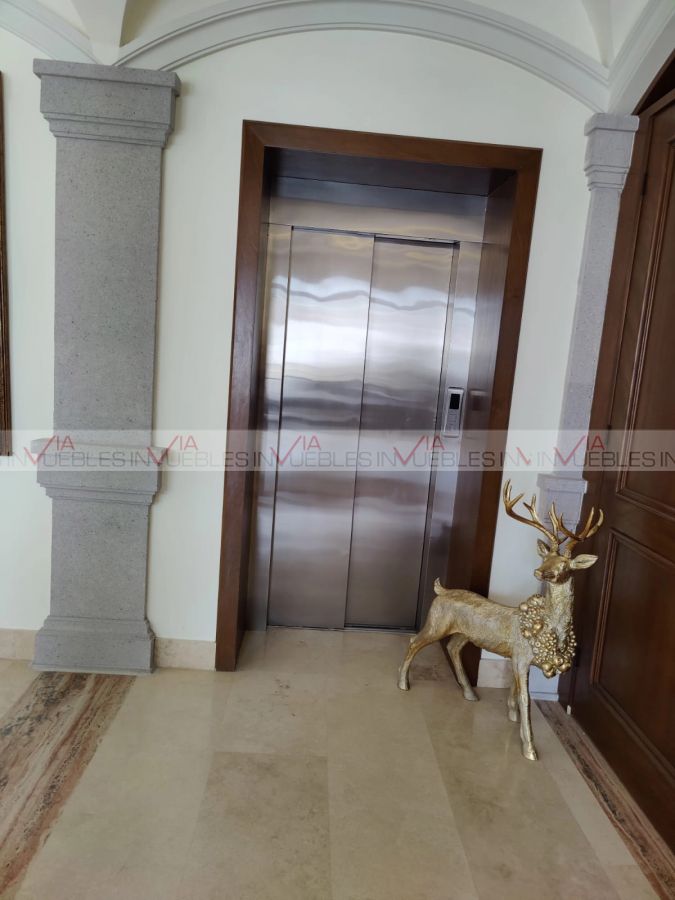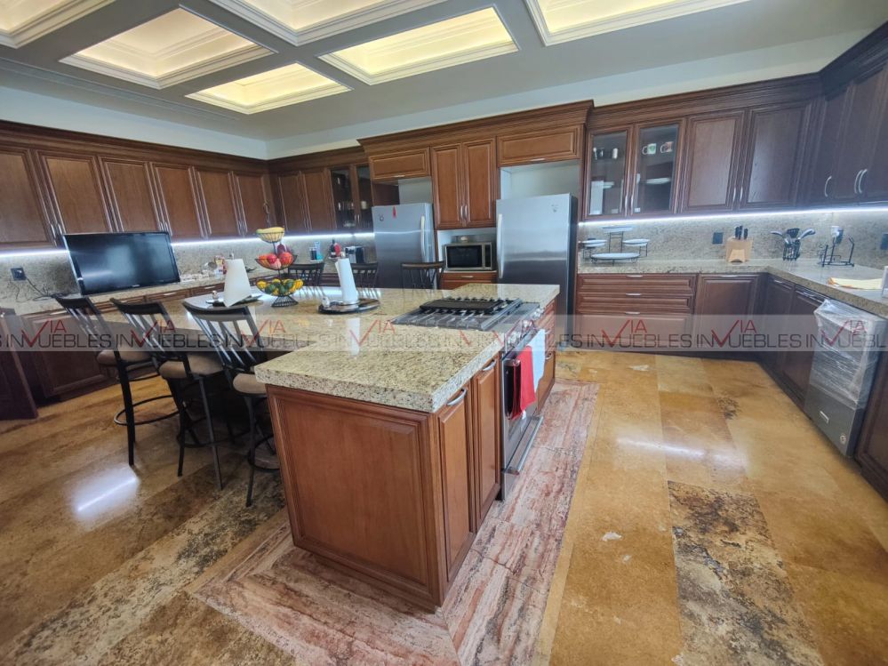 6 recamaras cada una con baño y vestidor, estancia, estudio, sala de cine, gimnasio, terraza con jacuzzi, cuarto de servicio con entrada independiente, lavandería, patio amplio con alberca con palapa, asador y bar. 42 paneles solares