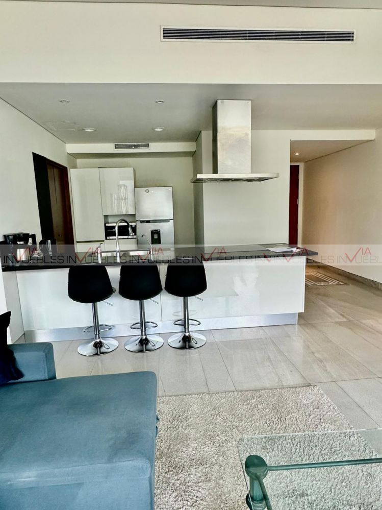Este moderno departamento totalmente amueblado y equipado te regala vistas panorámicas inigualables desde cualquier rincón, incluyendo una impresionante vista a la Sierra Madre desde la recámara principal.