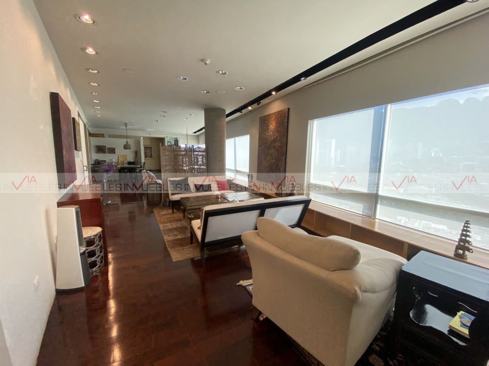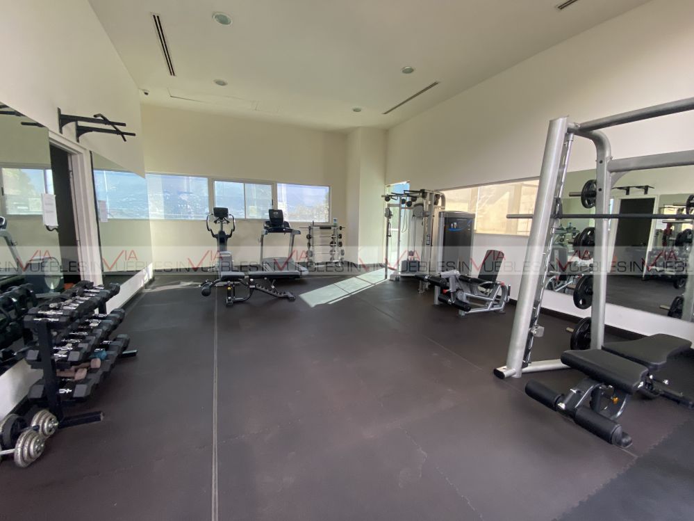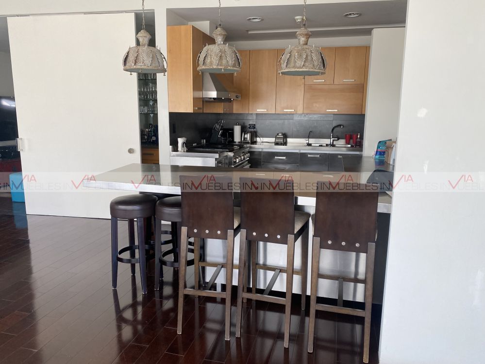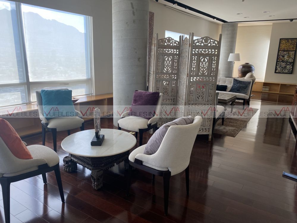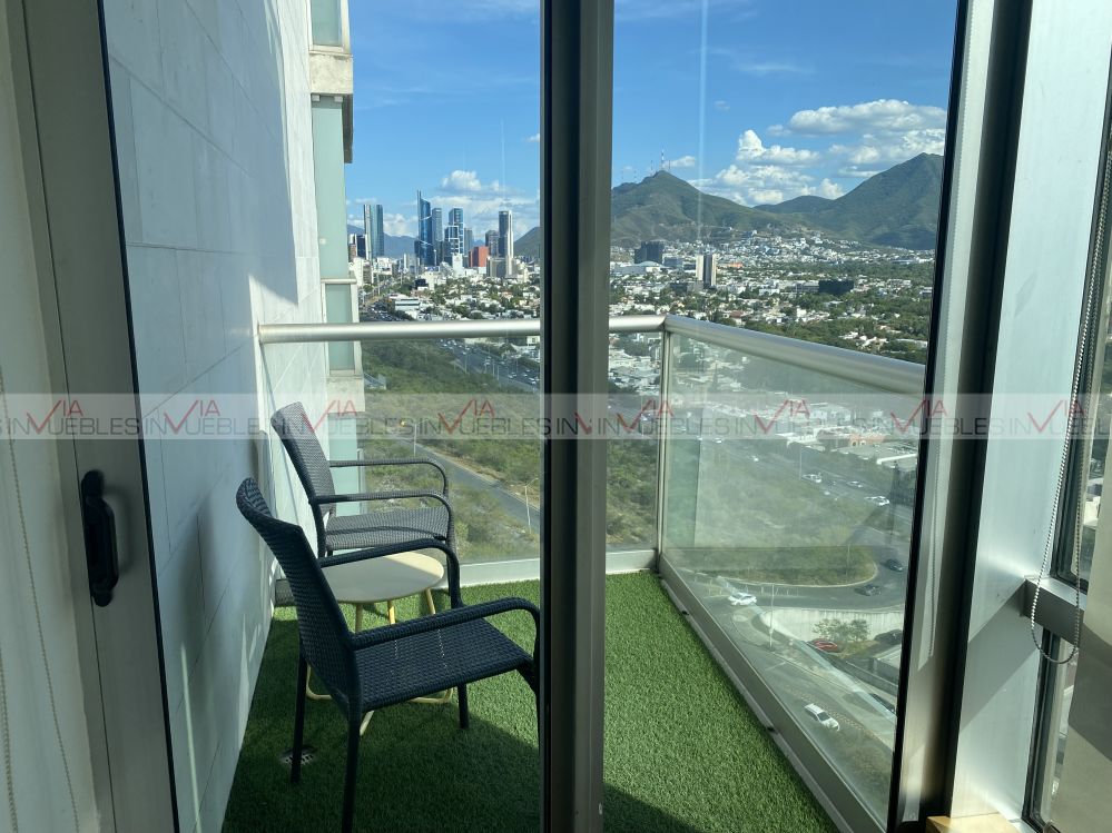 Espectacular departamento amueblado en zona Valle Oriente en San Pedro, equipado con muebles originales de muchas partes del mundo, le da un toque sofisticado a la decoración, por su ubicación la torre tiene vistas inmejorables, el departamento consta de sala, comedor, balcón, cocina equipada, dos recámaras, la principal con vestidor, dos baños que comparten regadera, la cual se independiza dependiendo su uso, lavandería, cuarto de servicio, bodega, dos cajones de estacionamiento. Entre las amenidades está una alberca con carril de nado, áreas verdes, terrazas, área de asador, gimnasio, pet zone, salón de eventos, sala en el área de recepción. Seguridad 24/7.