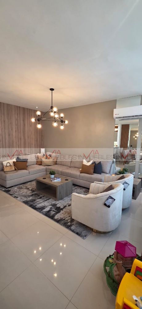Hermosa casa en Venta en Escobedo sector Vancouver, con acabados de lujo. Esta propiedad cuenta con 3 recamaras, 3 baños completos, 1 medio baño, 2 cajones de estacionamiento, hermosos muebles y carpintería, seguridad las 24 horas, minisplit, calefacción, boiler, gas, luz y agua. Además, tiene una cocina equipada con estufa, asador y bodega. Con 144m2 de terreno, 220m2 de construcción, 8 metros de frente y 18 metros de fondo, esta casa de 2 plantas con 7 años de antigüedad también cuenta con celdas solares y sistema inteligente de cámaras, timbre, luces, etc. ¡No te pierdas esta increíble oportunidad!