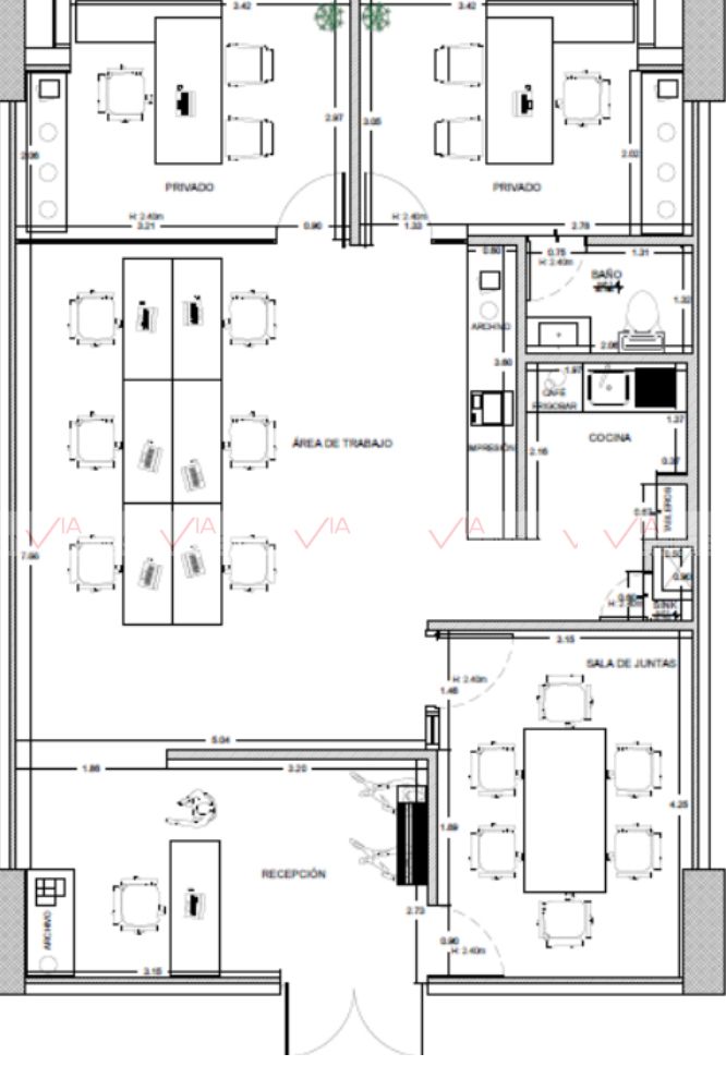 Ideal para empresas que buscan un espacio funcional y seguro para operar sus negocios. Cuenta con dos privados, recepción y sala de juntas.