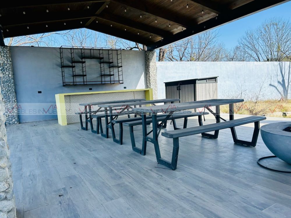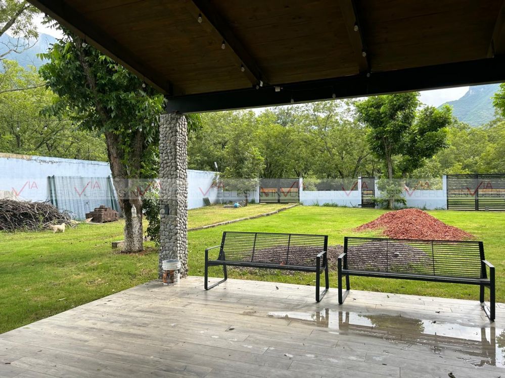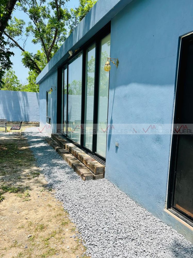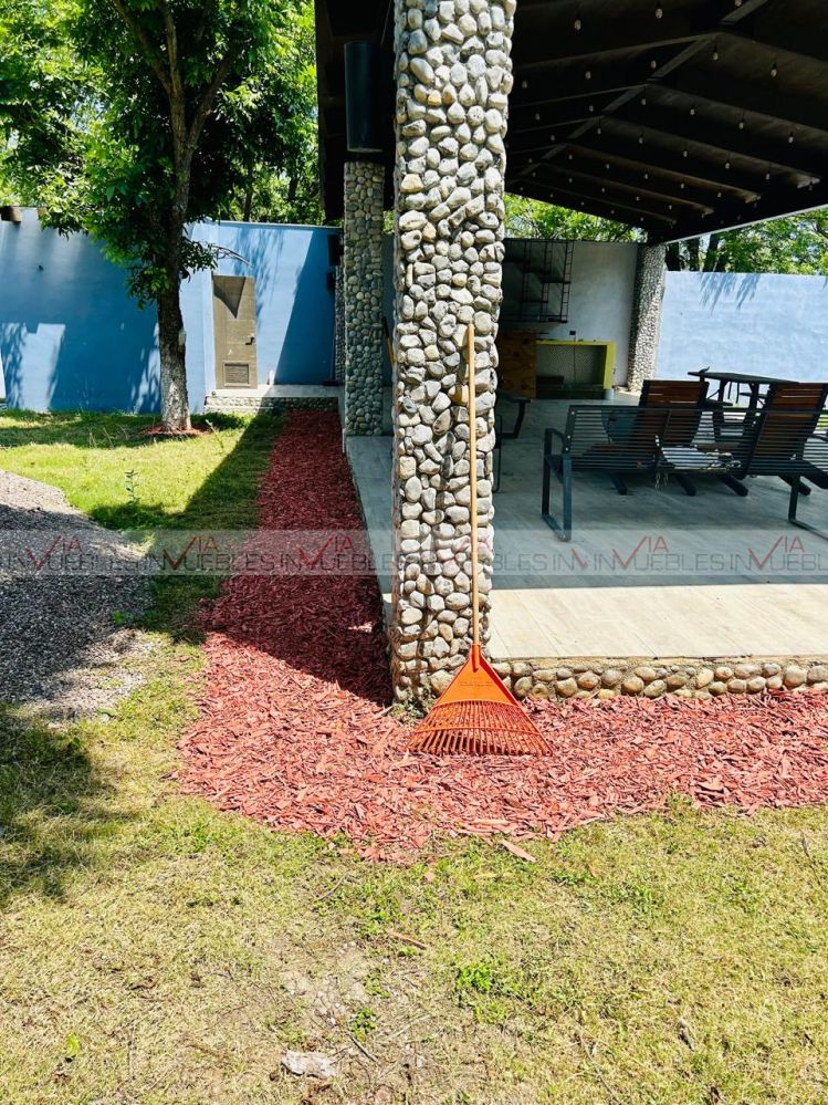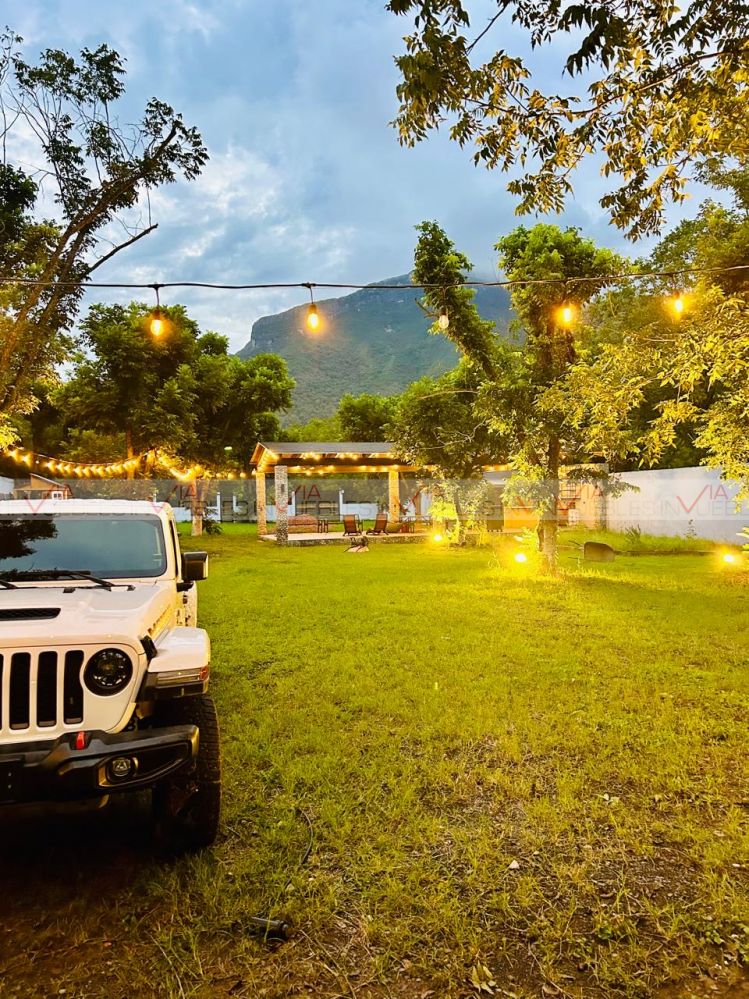 Hermosa quinta en venta en el fraccionamiento campestre Los Nogales en Montemorelos N.L. cerca del río Pilón, es el lugar perfecto para aquellos que buscan un rincón de paz y confort. Con 2000M2 de terreno plano y una casa equipada de 120m2 de construcción con 2 recamaras y 2 baños completos, minisplits, boiler, sala con chimenea, comedor y cocina con cocineta, semi amueblada, tiene todo lo que necesitas. Disfruta de la palapa de 120m2 de construcción con pisos y barra de mármol que además cuenta con baño completo y 2 sanitarios exteriores, la quinta tiene servicio de Luz, agua de pozo, cisterna de 5 mil litros, fosa séptica con biodigestor, barda perimetral, 2 portones de madera y forja así como una puerta peatonal. ¡No dejes escapar esta oportunidad única!