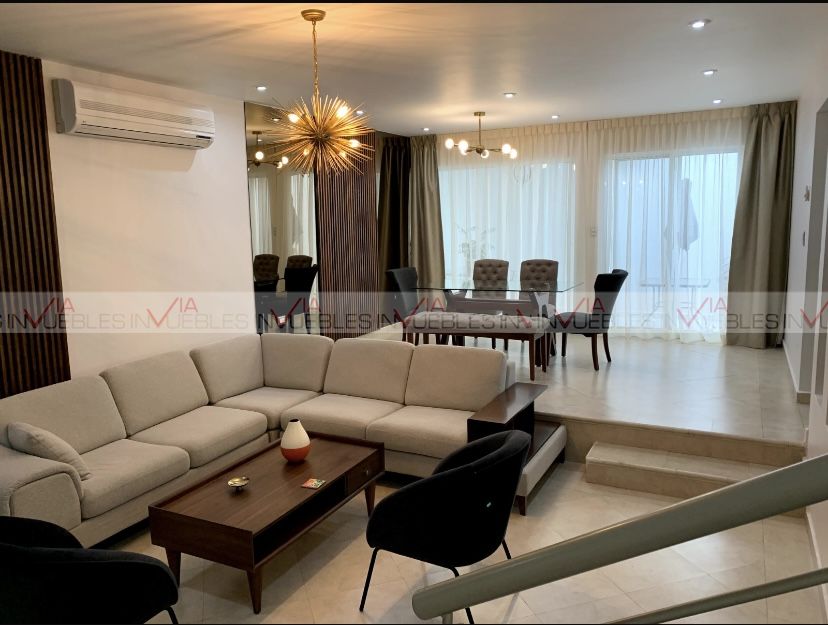Hermosa casa totalmente amueblada de tres niveles , 3 recamaras ,4 baños , cocina integral equipada , cochera para dos autos automatizada, roof garden con estancia y baño completo , en calle privada con vigilancia 24/7 con Exelente ubicación y cerca de centros comerciales , avenidas principales y colegios