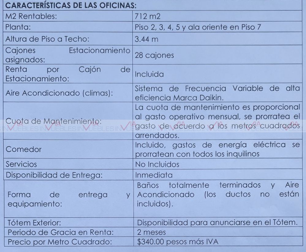 Oficinas Vasconcelos es una propiedad en renta que cuenta con opción de renta 2 áreas de oficinas por piso o piso completo 8 medios baños y una superficie de 2464M2 de terreno.