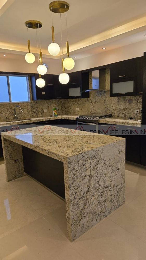 Ofrezco preciosa casa en renta en Colinas de San Jerónimo. Posee una construcción de 275 mts2, distribuido en 3 plantas. Cuenta con una amplia cocina integral con cubierta de granito y una isla central, bellamente iluminada por 2 candiles. Su área social es muy espaciosa y cuenta con plafones con luz indirecta que hacen muy elegantes los espacios.