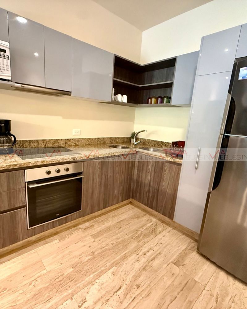 El departamento se entrega 100% equipado con closets, canceles, aires acondicionados, cocina integral, centro de lavado y amueblado listo para usarse.