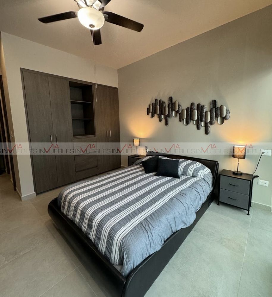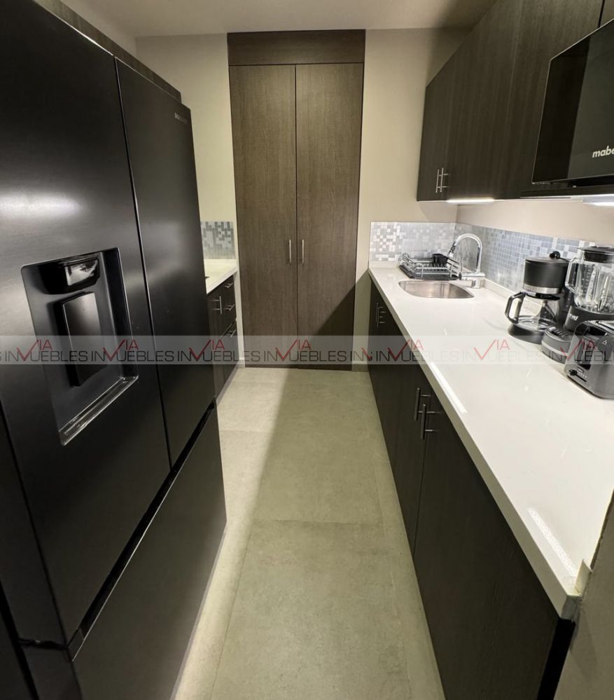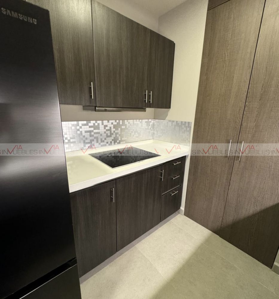 Precioso departamento en renta de 1 recámara totalmente equipado y amueblado en Jardín Secreto, Valle Poniente. Cuenta con mobiliario moderno y está finamente decorado. La cocina posee electrodomésticos como refrigerador, microondas, estufa con extractor.
