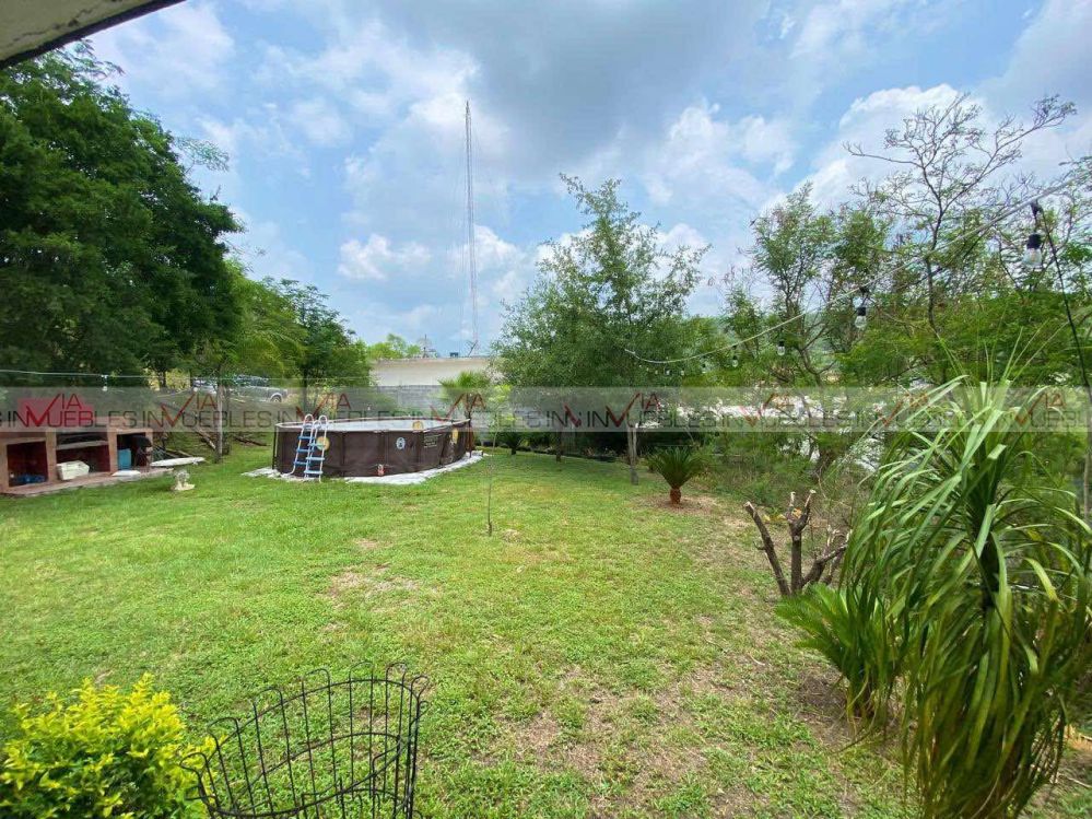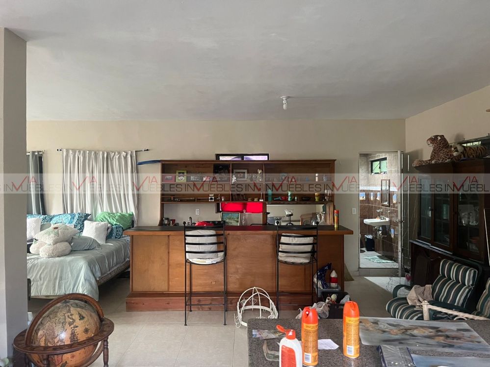 Está amueblada con una cama King size, una individual doble, barra desayunadora, una vitrina y equipada con cocina integral, alacena de madera, parrilla eléctrica, microondas, cuenta con una alberca armable para disfrutar en familia, un hermoso jardín, 2 minisplit, bodega, y servicios de luz y agua.