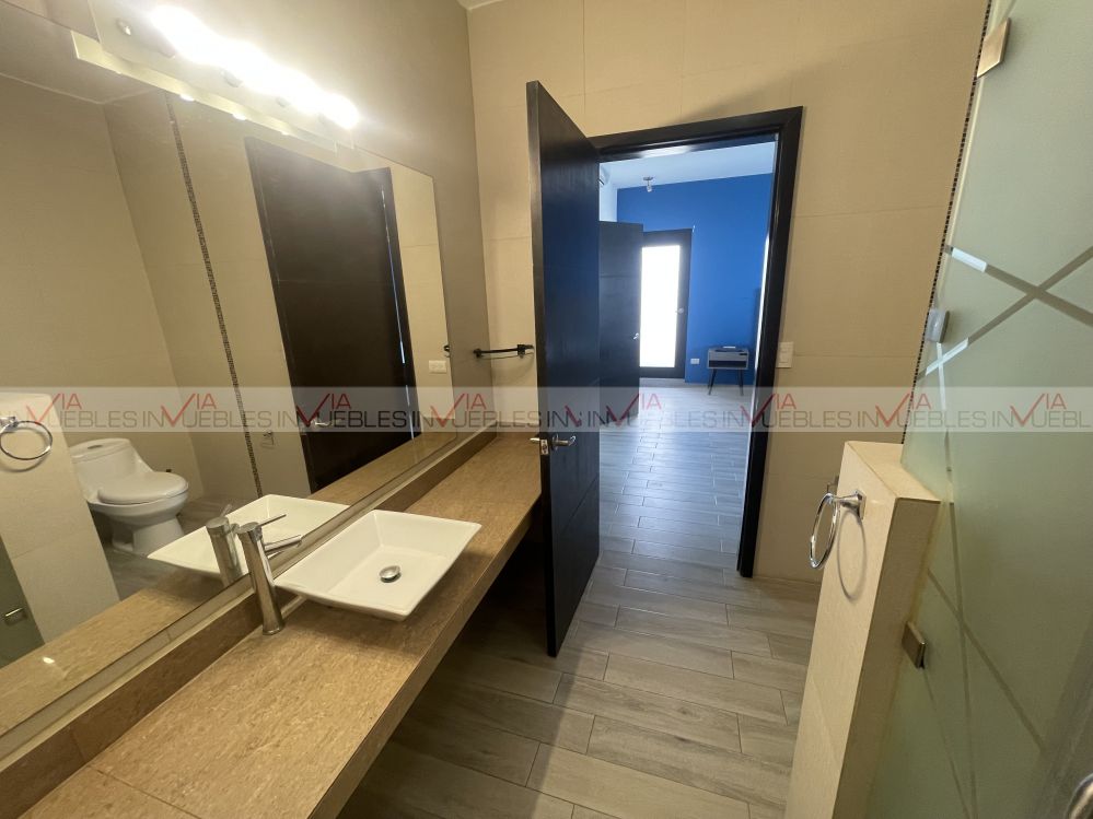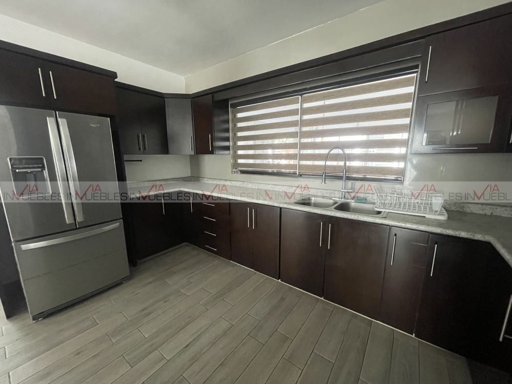Casa en renta en Cumbres Elite, sector Villas. Cerca de colegios, a media cuadra de parque. Cochera para dos autos con portón eléctrico, recibidor, área para cocina y comedor y cocina muy amplia, lavandería techada y medio baño de visitas.