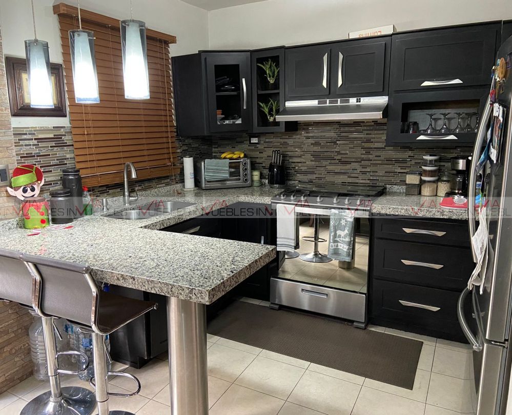 Casa de 2 plantas, en Planta Baja, cuenta con area de sala y comedor, cocina integral de granito, medio baño y su area de lavanderia, area de estacionamiento techado para dos autos y con asador empotrado en el área del porche.