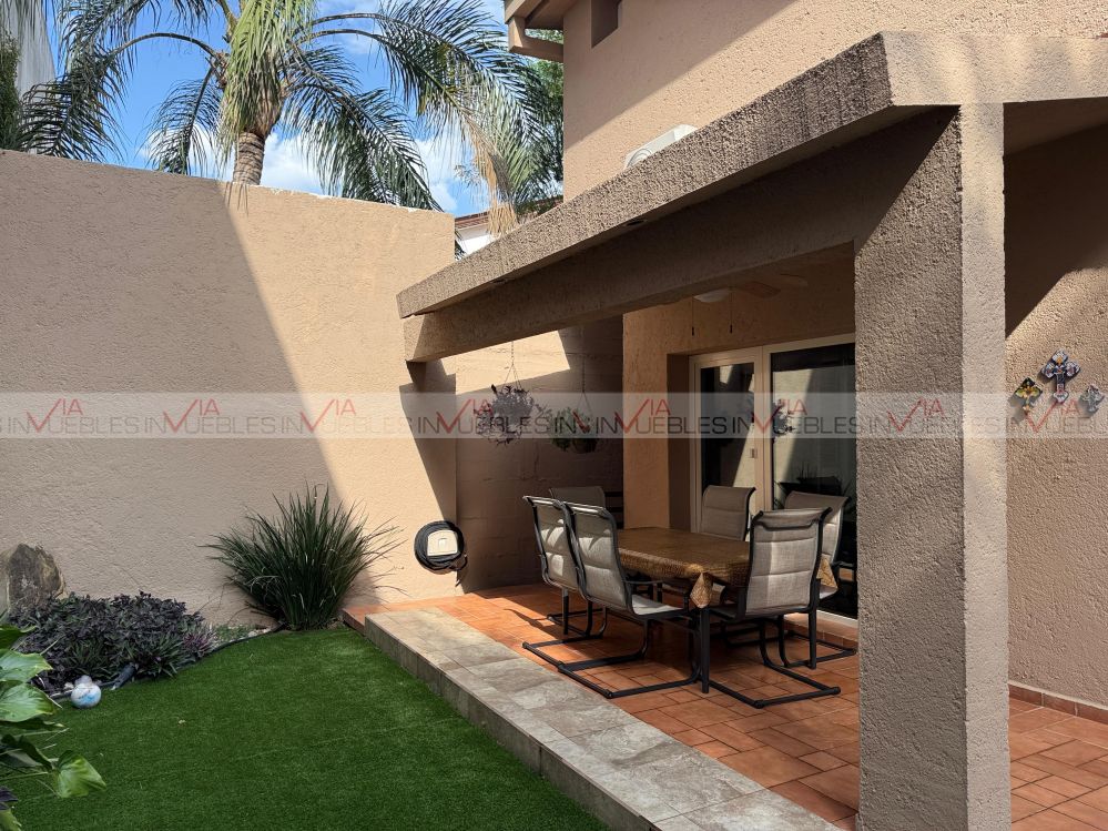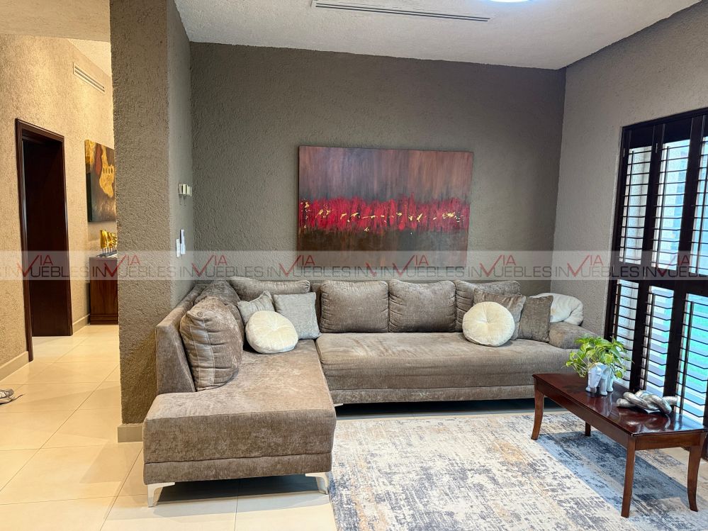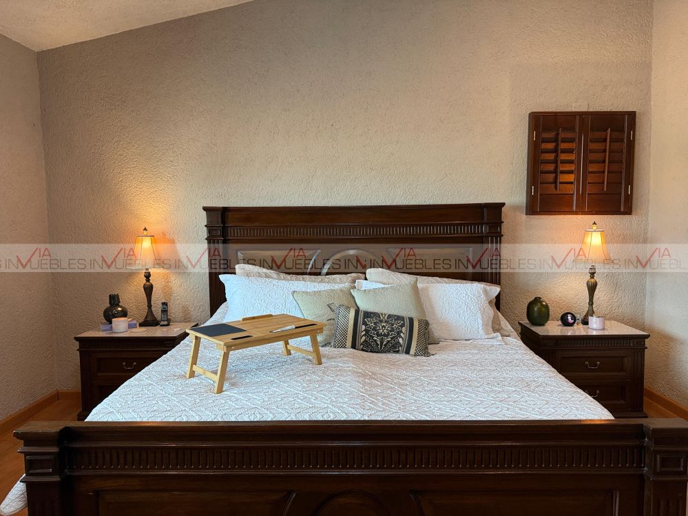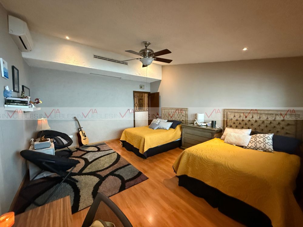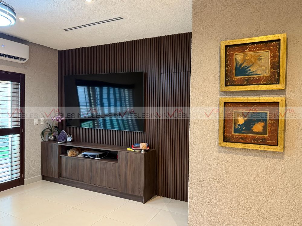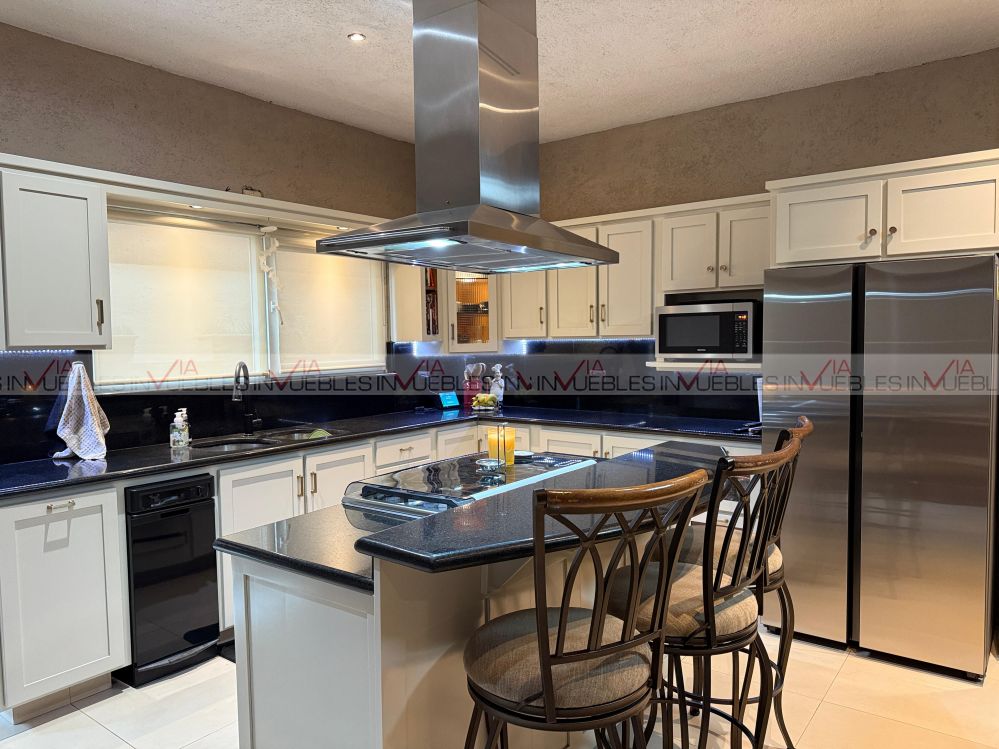 Hermosa residencial de 4 recamaras una de ellas en planta baja, cuenta con seguridad 24 horas, áreas de juegos en amenidades, 3 recamaras con walking closet, 5 baños, portón electrico, estacionamiento para 3 carros, 450 metros de terreno y 570 de construcción, sala, comedor, cocina equipada completamente amueblada, oficina, gym, lavandería, cuarto de servicio, alacena, muebles de madera empotrados, recibidor, pequeña terraza, area de asador y jardín lista para habitarse