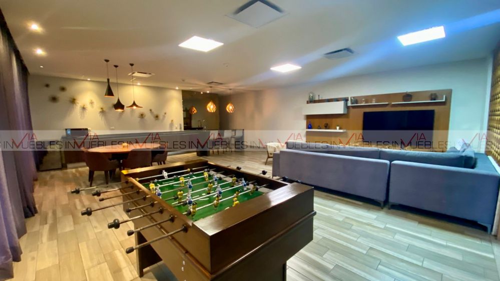 En venta hermoso departamento en Park Santa María, en piso 11. Excelente ubicación, con fácil acceso y rápido avenidas principales. Cuenta con dos recamaras cada uno con su baño completo, walk in closet en uno y closet el otro. Cocina integral con barra de granito, estufa, micro, campana, refri. Su sala y comedor, medio baño, lavandería y bodega; Incluyen minisplit. También cuenta con un balcón con vistas espectaculares a la Sierra Madre.